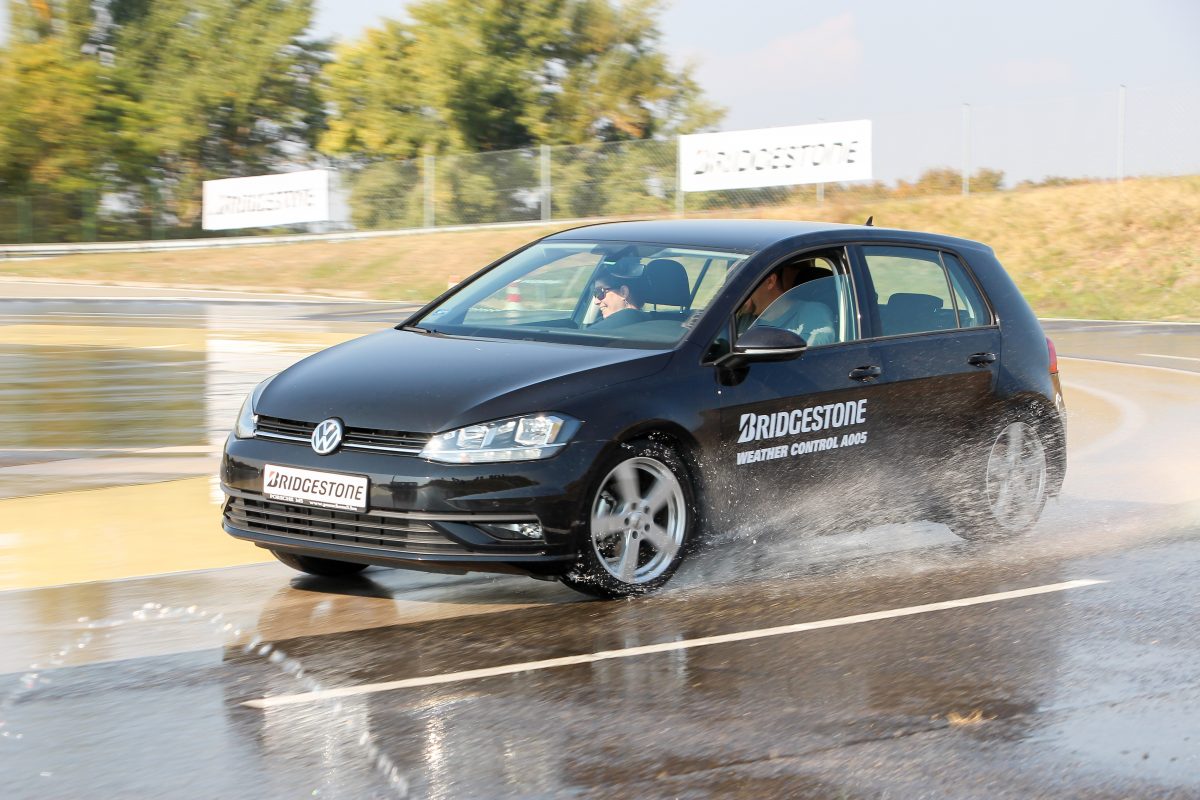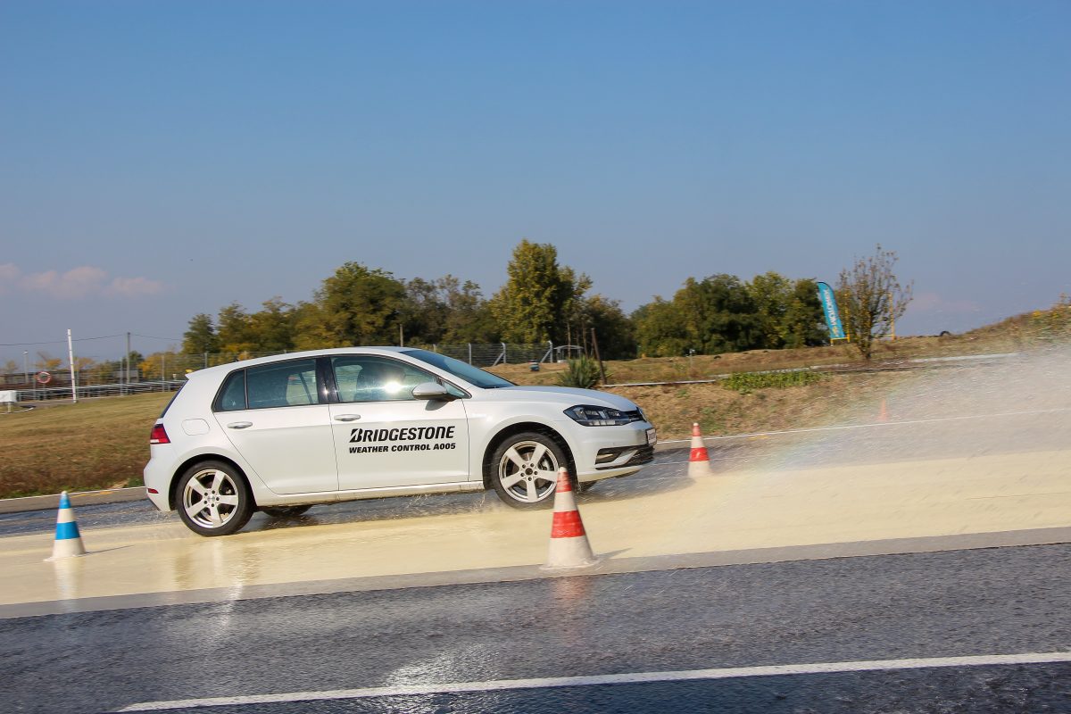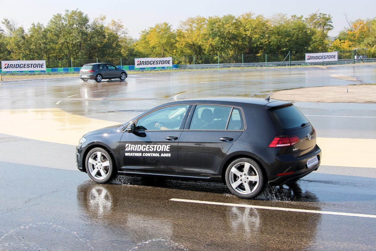 Amit egyelőre tapasztalhattunk, az annyi, hogy nedves műgyantán valóban jobban tapad a Bridgestone Weather Control A005, mint a Michelin Cross Climate+, legyen szó sík úton elindulásról, fékezésről, vagy kapaszkodásról. Még meggyőzőbb volt a 70 km/órával több centi mély vízbe hajtás, majd az ottani vészfékezés, a Bridgestone gumija jóval magasabb tempónál és jóval határozottabban tapadt, így rövidebb fékutat kaptunk. Ezen tapasztalatok szerint az új gumi egyértelműen ajánlható, persze teljes ajánlást akkor adnék neki, ha már túl lennénk a száraz méréseken is. Addig is érdemes barátkozni vele, ugyanis jó eséllyel minden körülmények között többet tud télen is, mint bármely 4-5 éves dedikált téli gumi, élettartamát pedig pont olyan jónak mondják, mint a Turanza T005 nyári abroncsé. Téli tanúsítványból rajta van a 3PMSF (3PeakMountainSnowFlake) jelölés, ami azt jelenti, hogy független szervezet által bevizsgáltan téli körülmények között is megfelelő abroncs, így mindenhol elfogadják annak. Már az idei évtől 64 méretben kapható 15-20 col között, személyautókra és a ma egyre divatosabb szabadidő-autókra is, kínálata már most lefedi a kereslet 95%-át, ám jövőre minden elképzelhető variációban elérhető lesz ezen méreteknél. Mindenképp érdekes abroncs, alig várjuk, hogy a hazai időjárás hűvösre forduljon, s elkészíthessük - többek között az A005-tel - idei téligumitesztünket. Addig persze nézegethető a tavalyi tesztünk, vagy akár az ADAC ideije is.