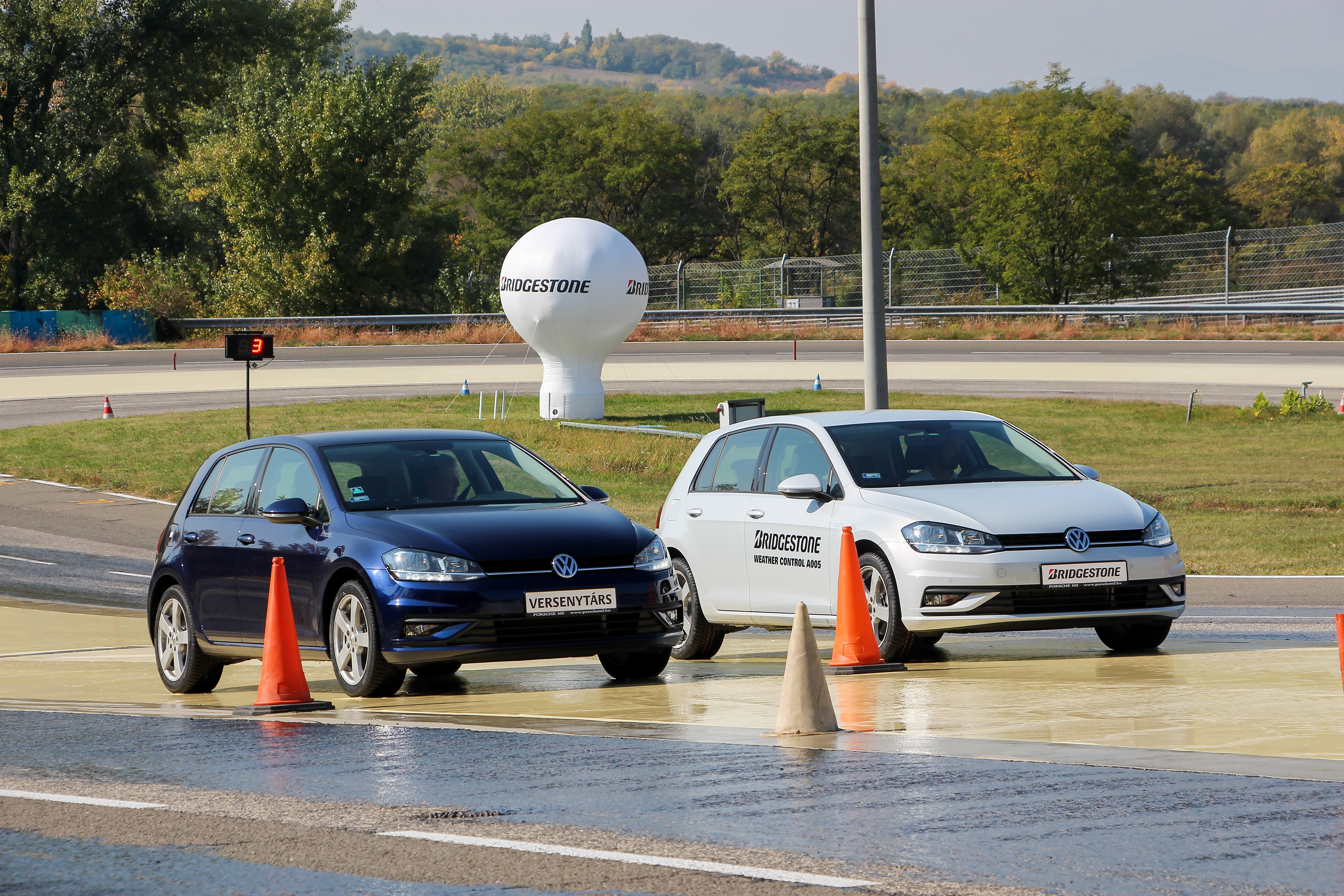 Egyértelműen érezhető volt, hogy a Bridgestone gumija hamarabb és jobban tapad, így rövidebb fékutat ad. Saját tesztünkön csupán nedves aszfalton is megnézzük majd jellemzőit