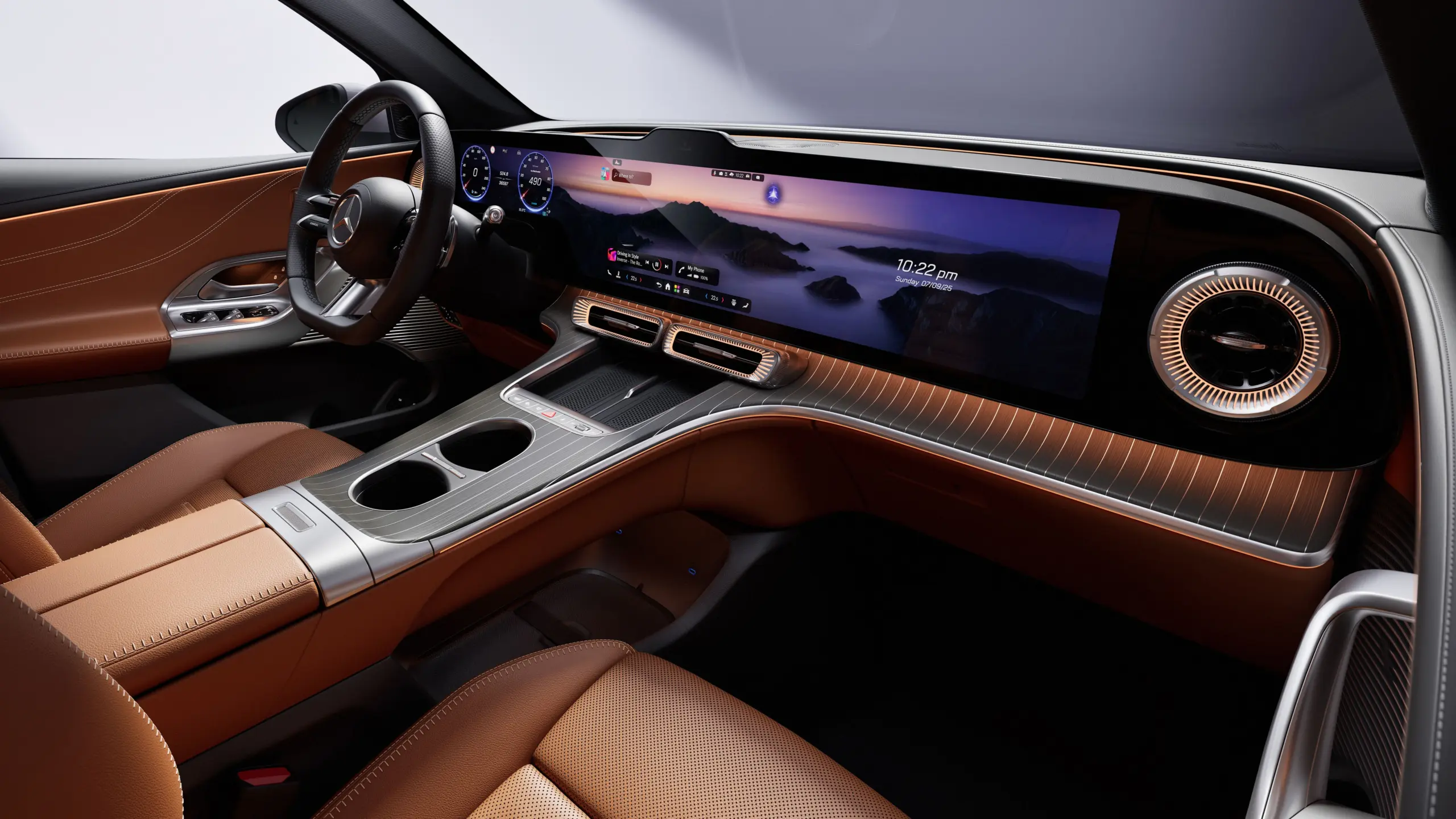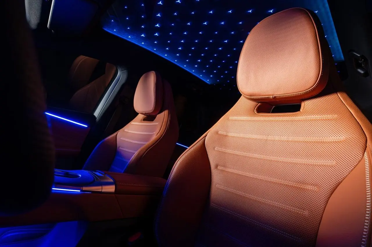 Bent az "érzéki letisztultság" dizájnfilozófia uralkodik, amit egyébként leural az óriási 39,1 colos kijelző (MBUX Hyperscreen). A belső égésű motoros GLC-hez képest 84 mm-rel hosszabb az EQ tengelytávolsága, így az első üléssorban 13 mm-rel több lábtér és 46 mm-rel több fejtér áll rendelkezésre, míg a hátsó utasok 47 mm-rel több lábtérnek és 17 mm-rel több fejtérnek örülhetnek. A csomagtér pedig alapból 570 literes, de a hátsó ülések lehajtásával 1740 literesre bővíthető. Sőt, az autó orrában is 128 literes rekesz található! További különlegessége az autónak, hogy a hatalmas panoráma üvegtető opcionálisan beépített csillagmotívumokkal rendelkezik (162 db), amelyek este káprázatosan világítanak.
