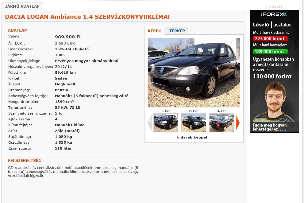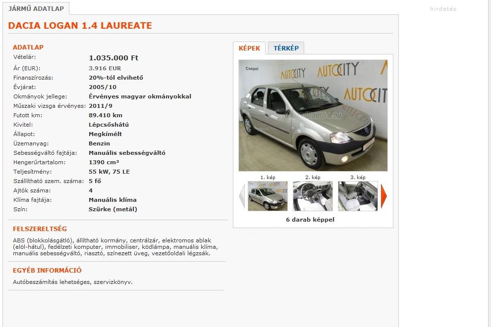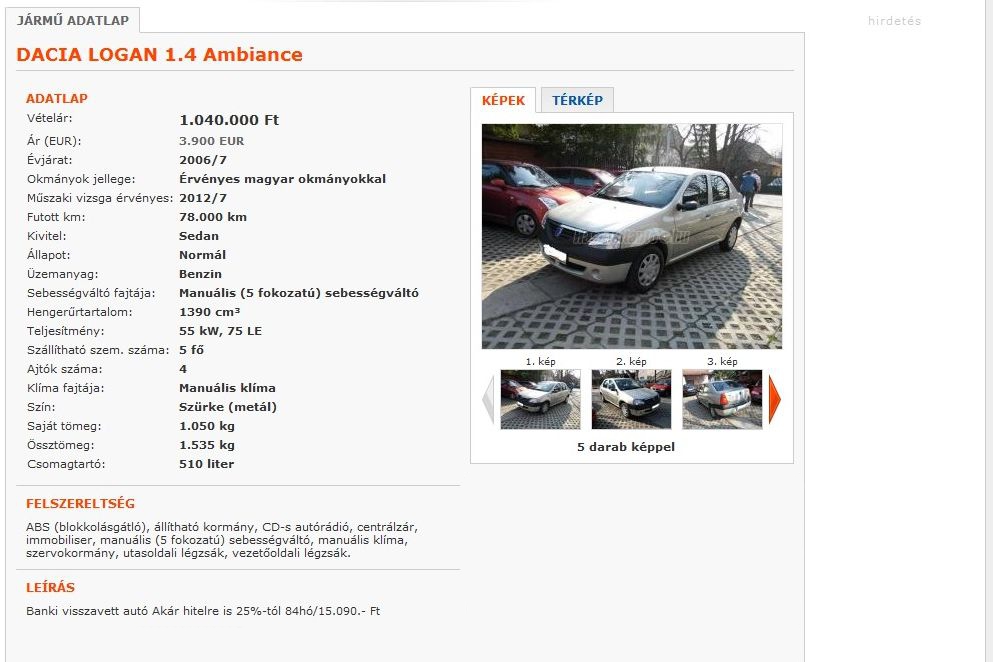 Banki visszavett autó a 2006-os, 1,04 millió forintért árult Logan 1.4 Ambiance