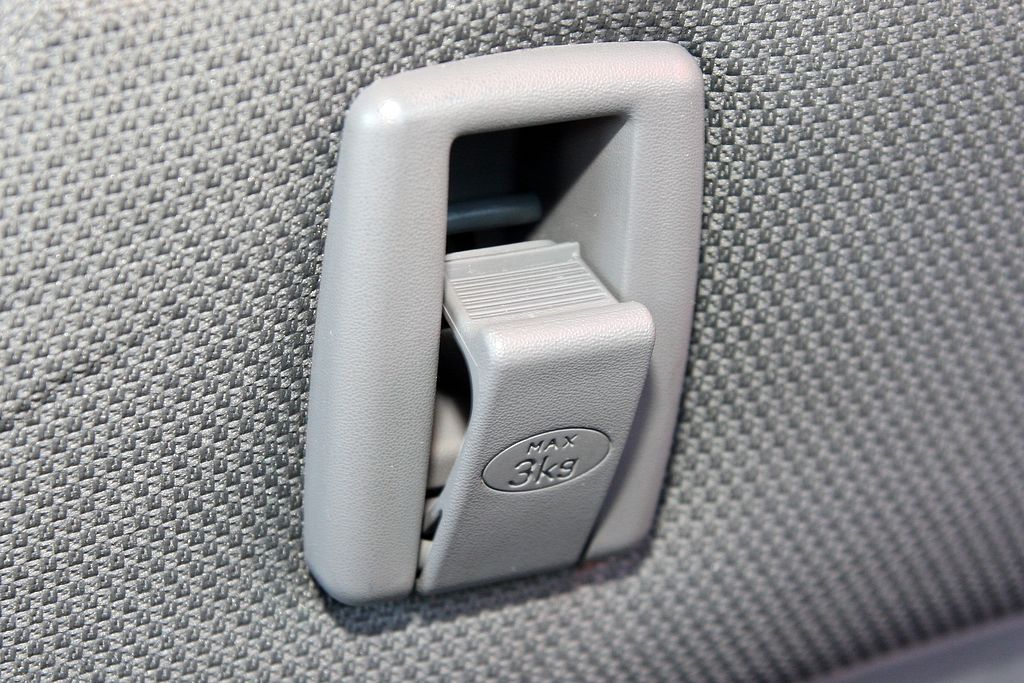 Ritka, de jó megoldás: a jobb első ülés háttámlájára ötletes, 3 kg teherbírású kis fület tettek