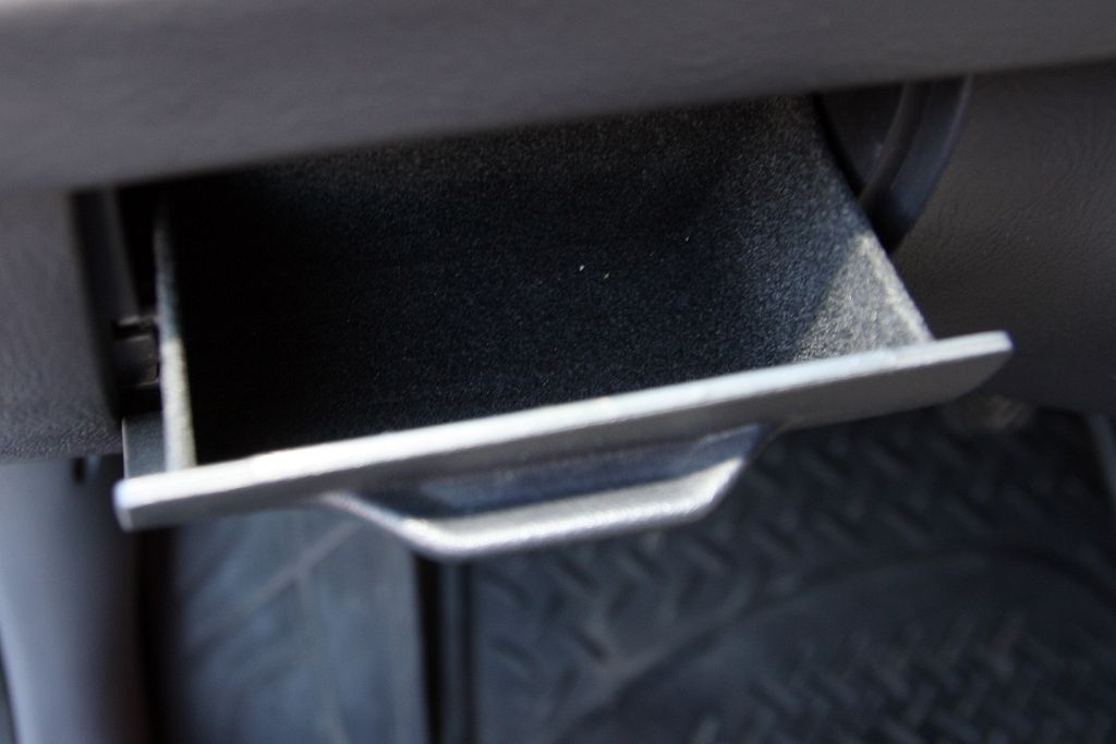 Nagyobb könyv is elfér a kesztyűtartóban. Gyári figyelmesség, hogy minden tárolórekesz vagy gumival, vagy filccel bélelt. Ha nem is szép a szivargyújtó és a 12 V-os csatlakozó együttese, a meglétük egyértelműen pozitívum