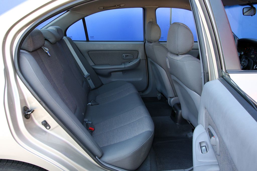 Nem óriási, de 415 literrel azért használhatóan nagy méretű a csomagtartó - sajnos zavaróak a térbe belógó pántok. Nagyon szép állapotú a kárpitozás, szakadás mentesek az ülések, és négy személynek kényelmes az Elantra. Hátul Isofix rögzítőpontosak a szélső ülések