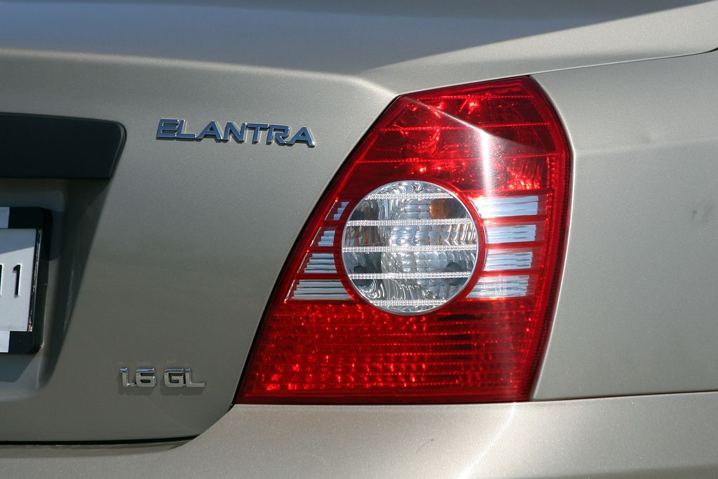 Hátulról nézve rendezettebb képet mutat az Elantra, mint szemből, innen vizsgálva némi formai hasonlóság fedezhető fel a korai Mazda 323-as szedánnal