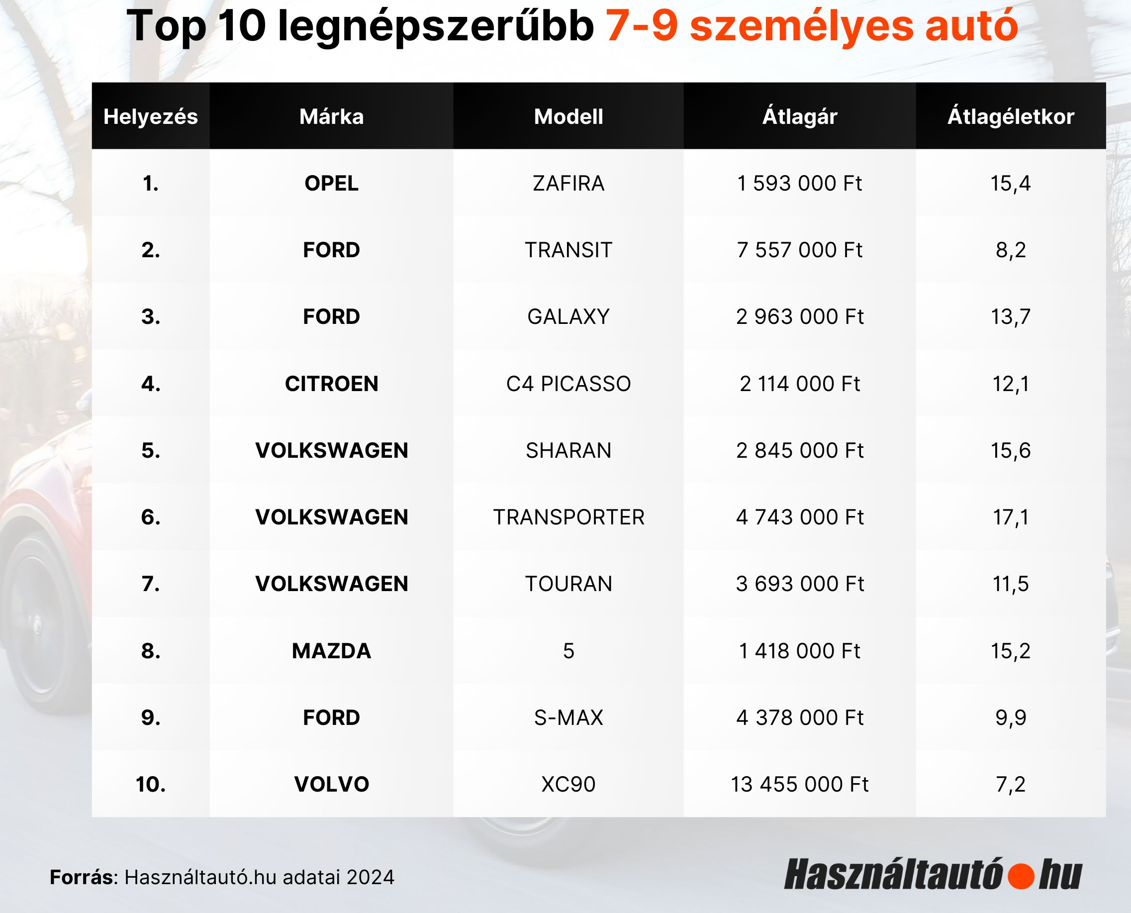 Megnéztük, hogy melyek a legnépszerűbb, 7-9 üléses használt autók a hazai piacon