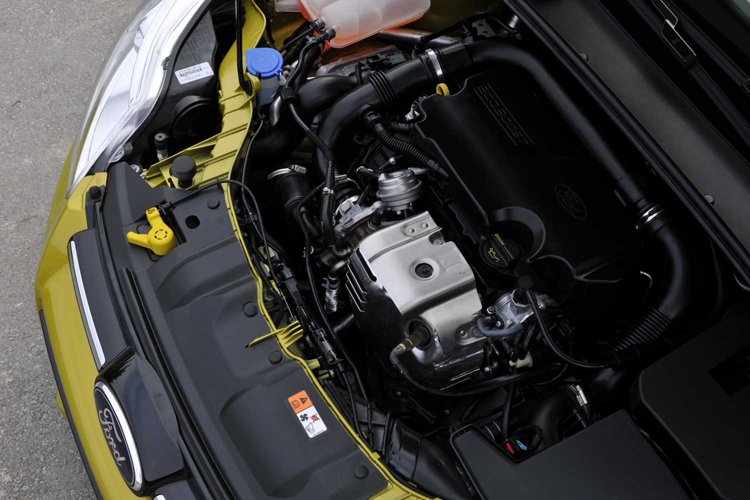 Három alappillérre támaszkodik az egyliteres Ecoboost. A mára már kipróbált és olcsó megoldásnak számító, ez alkalommal alacsony fordulaton is gyorsan felpörgő, kis ellenállású turbóval 50%-kal csökkenthető a motor hengerűrtartalma a teljesítmény visszaesése nélkül. A közvetlen befecskendezésnek köszönhetően a dízelhasználók számára már megszokott szinten, 1500-as fordulaton is elérhető a 170 Nm-es maximális nyomaték. Az üzemanyag magas, 150 baros nyomáson kiválóan porlad, azáltal pedig, hogy hat nyíláson át, ütemenként akár három alkalommal lövik a hengerekbe, tökéletesedik az égés és csökken a károsanyag-kibocsátás. Utolsó fő fegyvere a kettős, szívó- és kipufogóoldali változó szelepvezérlés. Ennek köszönhetően mindig az adott terhelésnek és szituációnak megfelelően változtathatják a szelepek nyitvatartási idejét, ami segít kizárni a turbómotorokra jellemző kopogást, alacsony fordulaton növeli a nyomatékot, és minden helyzetben biztosítja a motor rugalmasságát.