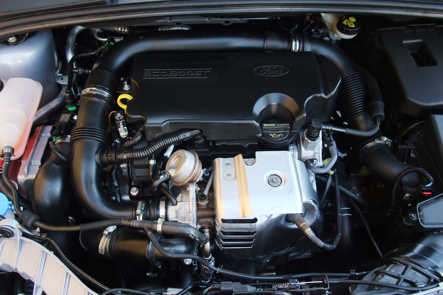 Alacsony tehetetlenségű turbó, kétoldali változó szelepvezérlés, közvetlen befecskendezés az egyliteres Ecoboost fegyvertárában. Gyárilag tervezett élettartama 240 ezer km
