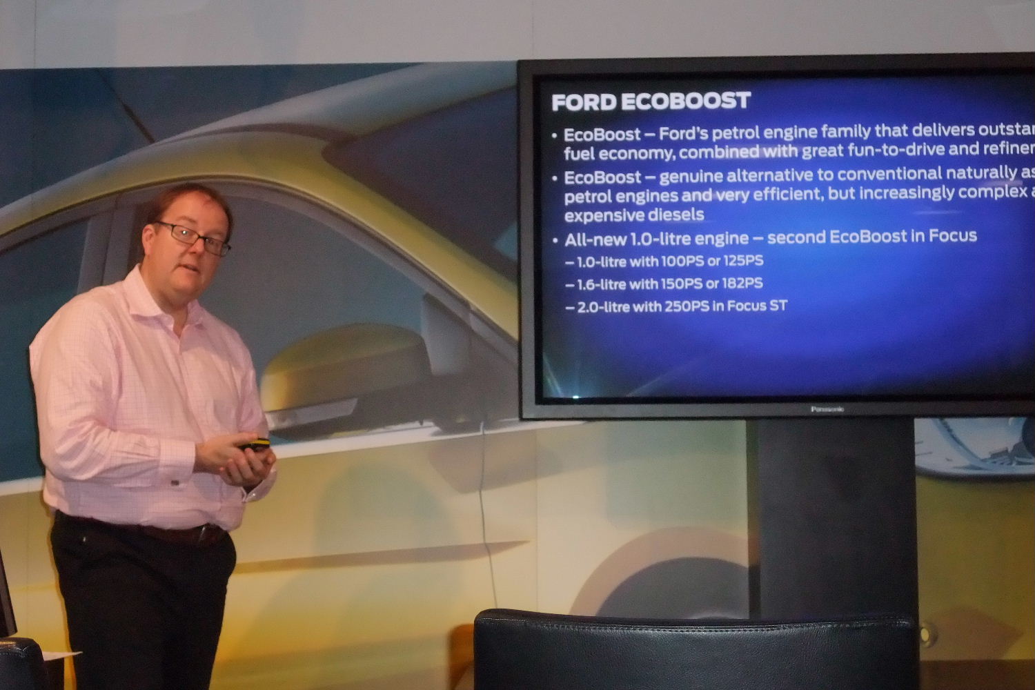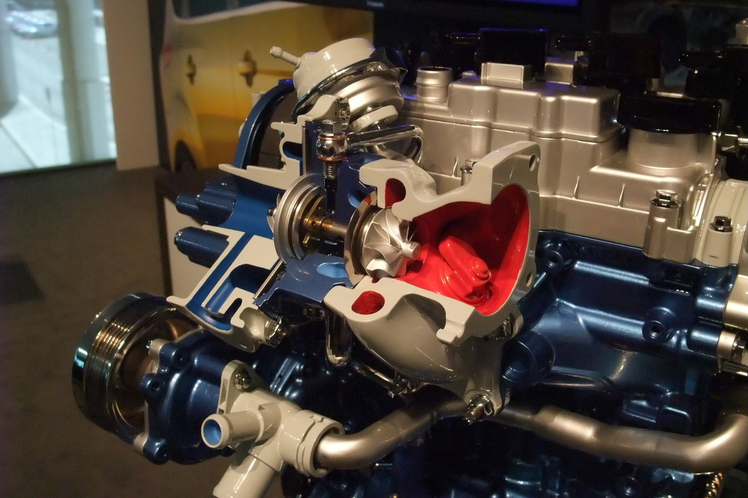 Pontosan négy év telt el a koncepció megszületésétől számítva, amíg a mostani, 999 cm3-es Ecoboost motort tökélyre reszelték. Az öntöttvas blokkot és öntöttvas hajtókart tartalmazó, de alumínium hengerfejet viselő háromhengeres tömege 97 kg: az alacsony súly miatt könnyebb az autó orra, ergo jobban vezethető. A Fordnak annyira bejön a kipufogógázzal hajtott feltöltés, hogy rövid időn belül teljes - gázolajos és benzines - motorválasztéka egységesen turbós lesz. A turbóval több levegőt lehet a hengerekbe juttatni, mellé közvetlen befecskendezéssel épp csak a tökéletes égéshez szükséges minimális mennyiségű üzemanyagot, jelen esetben benzint spriccelni, s máris jelentősen javul a hatásfok, vagyis végeredményben csökken a fogyasztás és az emisszió.