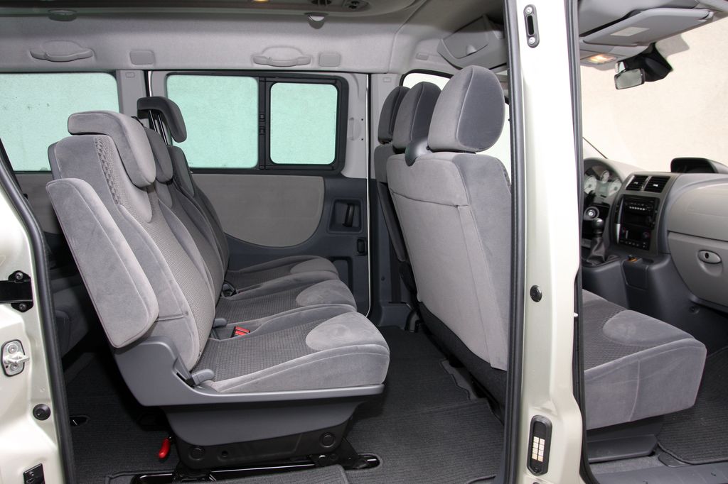 Nem csak tér, kényeztetés is bőven jut mindenkinek, elöl feltűnően sok a pakolóhely, óriási a fej fölötti két zárt és egy nyitott polc. Kétzónás az automata klíma, gombnyomásra kapcsolható a hátsó tér fűtése, bársony a kárpitozás, többtónusú, zömében világos a műszerfal. Egy-egy negatívum persze előjött a teszthét alatt, az elöl kiszélesedő ajtózsebek például sokszor útban vannak kiszálláskor, könnyű azokba belelépni, ha nincs hely kitárni az ajtókat; rossz belegondolni, mi történhetne, ha csak egyszer „benézné” ezt valaki. Hátul ilyen gond nincs, hiszen ajtózseb sincs és az alapáron kétoldali tolóajtókkal szűk helyen is problémamentes a ki-be szállás. A ránézésre gusztusos ülések túlzottan puhák, menet közben is érezni, hogy nem tartanak kellően és egy 4-5 órás egyhuzamos vezetés után napokig hátfájás gyötört – persze, nem bizonyíthatóan az ülés miatt.