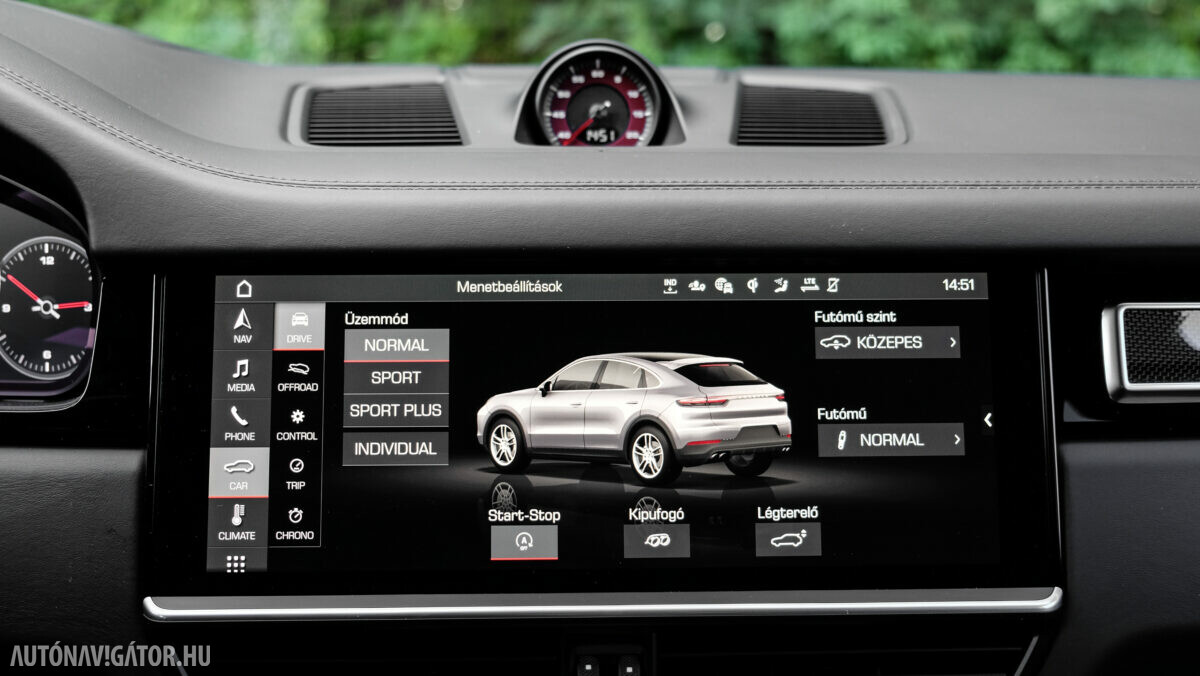 Fordulnak a hátsó kerekei is a lehető legszűkebb kanyarok érdekében, és az aktívan záródó hátsó difi oldalanként is vezérli a nyomatékot, esetenként pedig fékezgeti az ívbelső hátsó kereket. Középső differenciálműve is zárhat időnként, így a 0-100-as sprintideje mindössze 4,5 másodperc, és ez még mindig nem a legerősebb verzió a Cayenne kupéból.