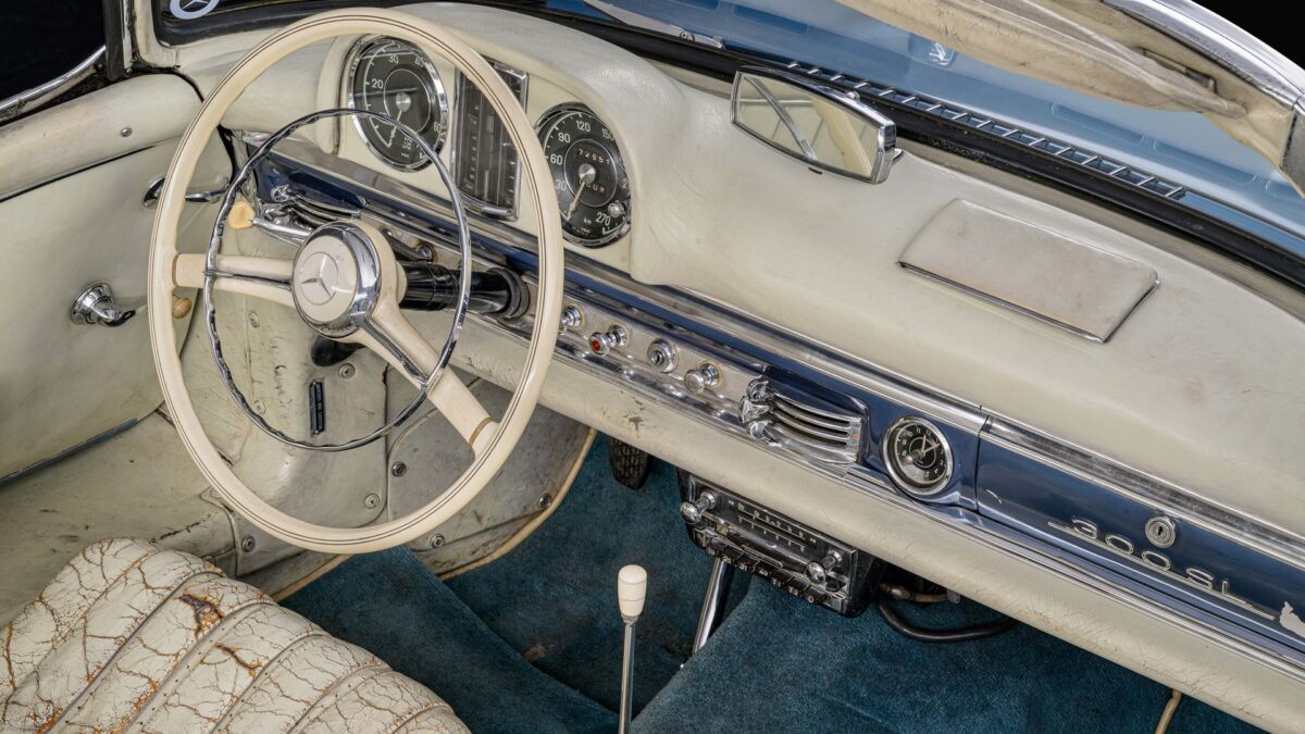 A Mercedes-Benz 300SL rendkívül ritka manapság; anno mindössze pár ezer darab készült belőle, a Fangio által birtokolt roadster változatból mindössze 1858 példány
