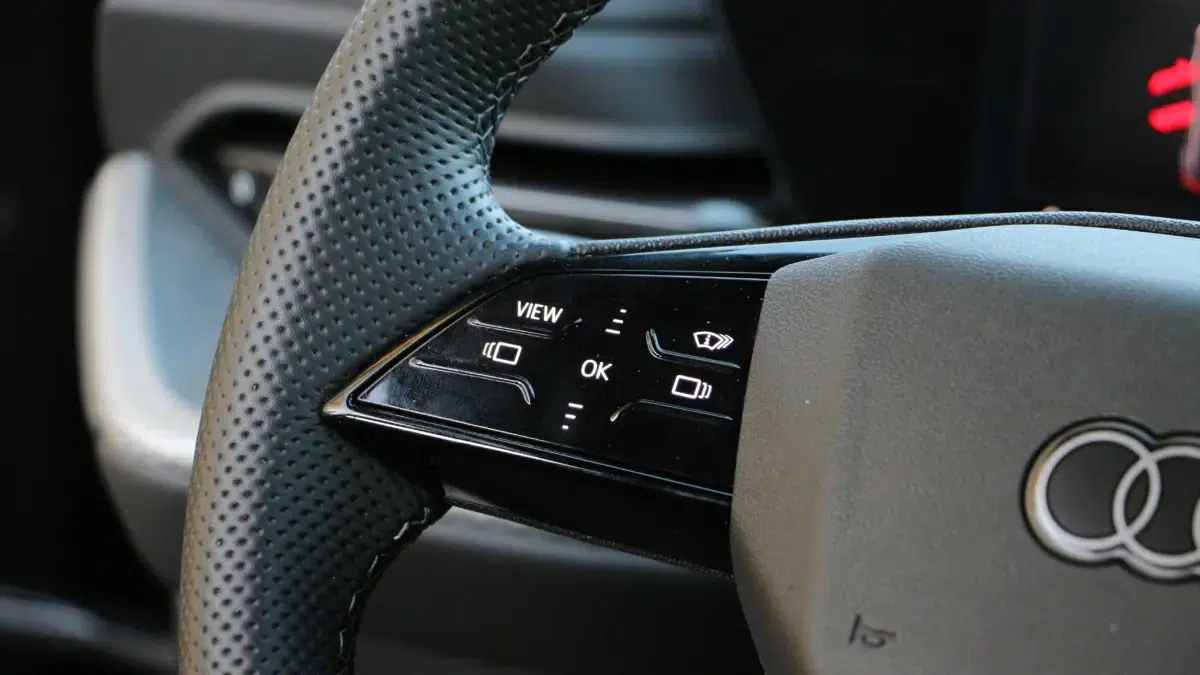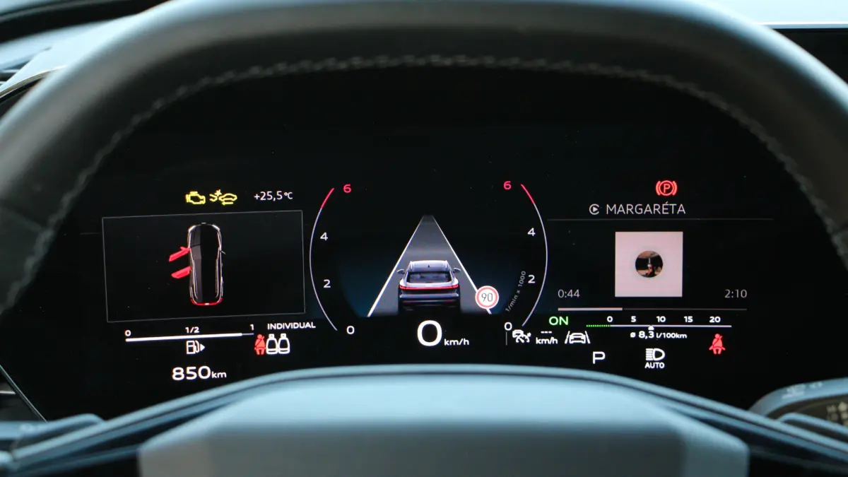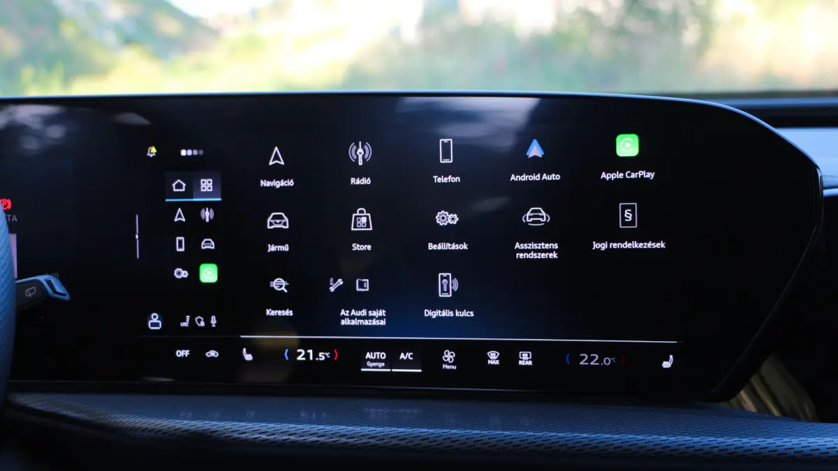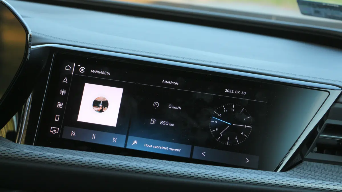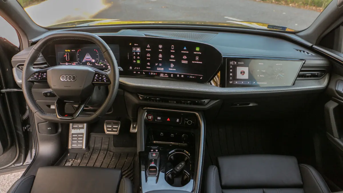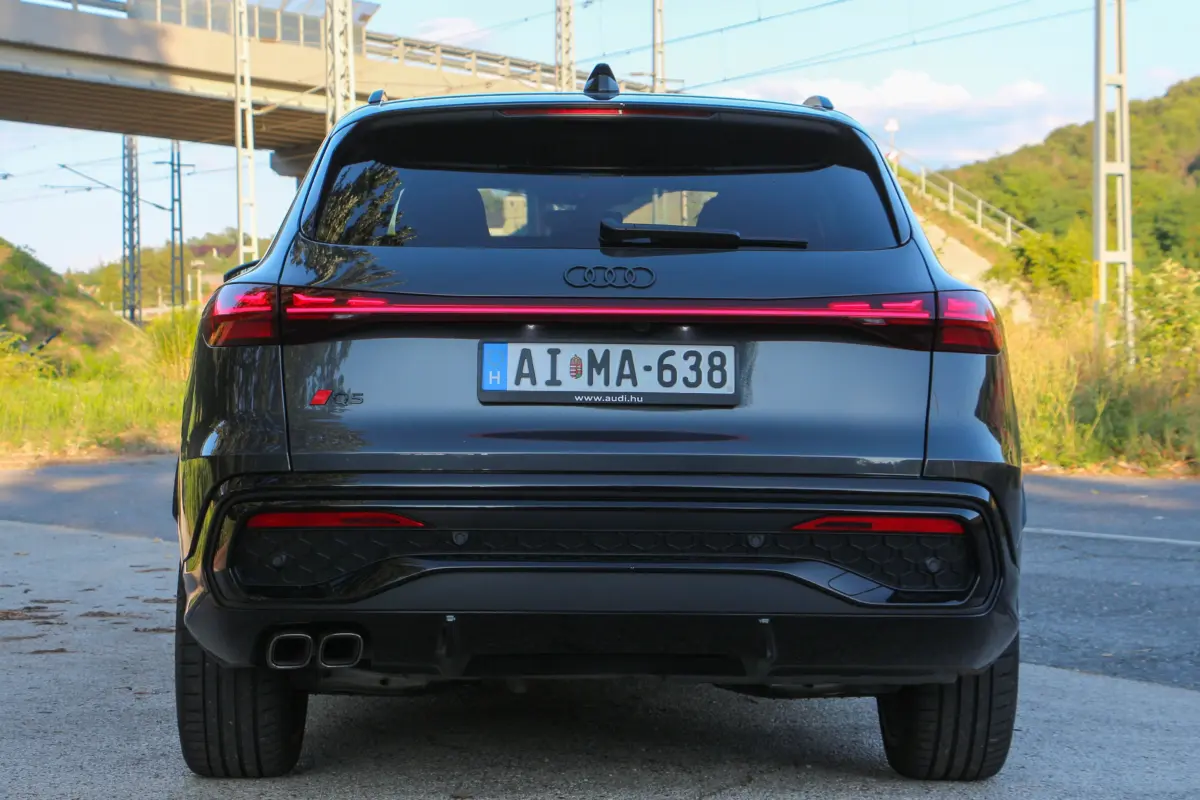 Persze gyorsan hozzá is teszem komoly előnye van a trónfosztókkal szemben, hiszen az Audi embléma továbbra is tekintélyt parancsol, és ehhez robusztus megjelenés társul, ami szolidan személyre szabható. Elöl-hátul a lámpatestek grafikája több, előre beállított minta alapján módosítható, de messze nem olyan mértékben mint például a frissített A3-ason. A tesztautó S-line csomaggal érkezett, így a 21 colos felnik, a fekete márkajelzések, valamint a króm díszbetétek hiánya inkább a sportosabb irányba mozdítja a Q5-ös látványát.Váratlan „meglepetés” az utastérben