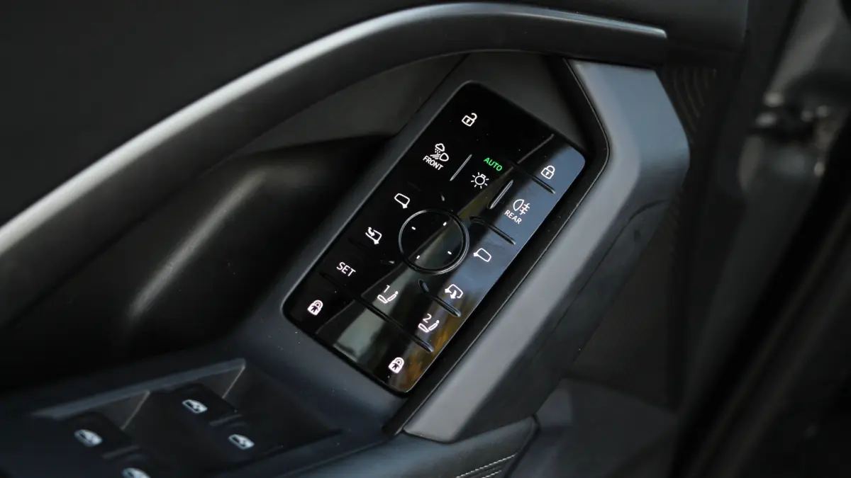 A vezetőoldali ajtót kinyitva olyan látvány fogad, amelyre az ember joggal mondhatja első pillantásra: ez prémium a javából. Aztán az ugyancsak S-line felszereltségi csomaghoz járó bőrkárpitozású ülésekbe huppanva az előbbi gondolat nyomatékosítható, hiszen a fotelszerű ülések elképesztően kényelmesek. Viszont engem ekkor ért az első kellemetlen meglepetés. Az ajtó behúzása közben nagyot nyekkent a fogantyú, amely egyébként körülményesen fogható meg, hiszen egy jókora, érintésérzékeny felületet pakoltak oda sok-sok gombbal. amelyen a központi zárat, a lámpákat, a külső visszapillantó tükröket, illetve az ülésmemóriát lehet állítgatni.Kínából ilyet még nem kapsz