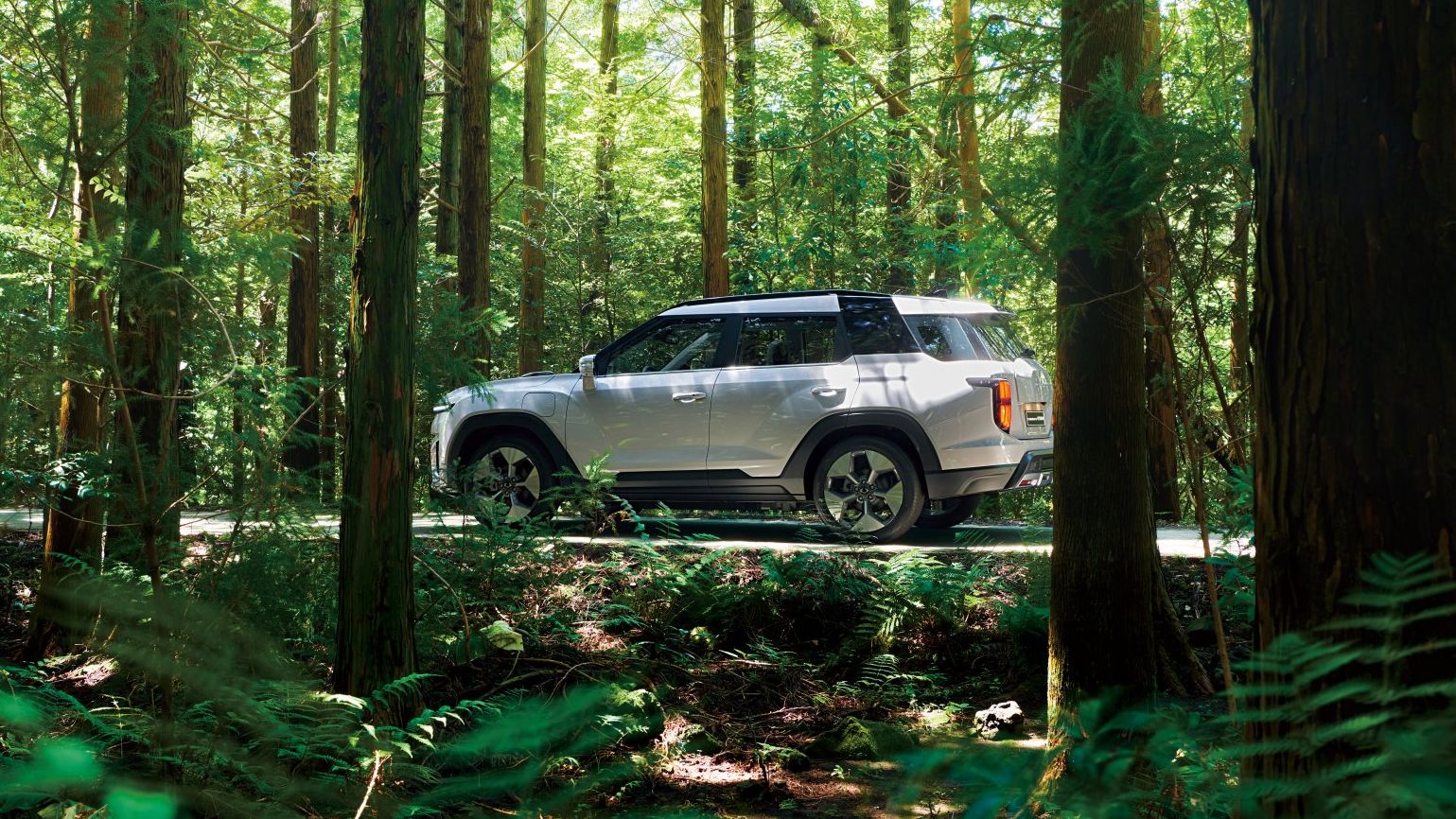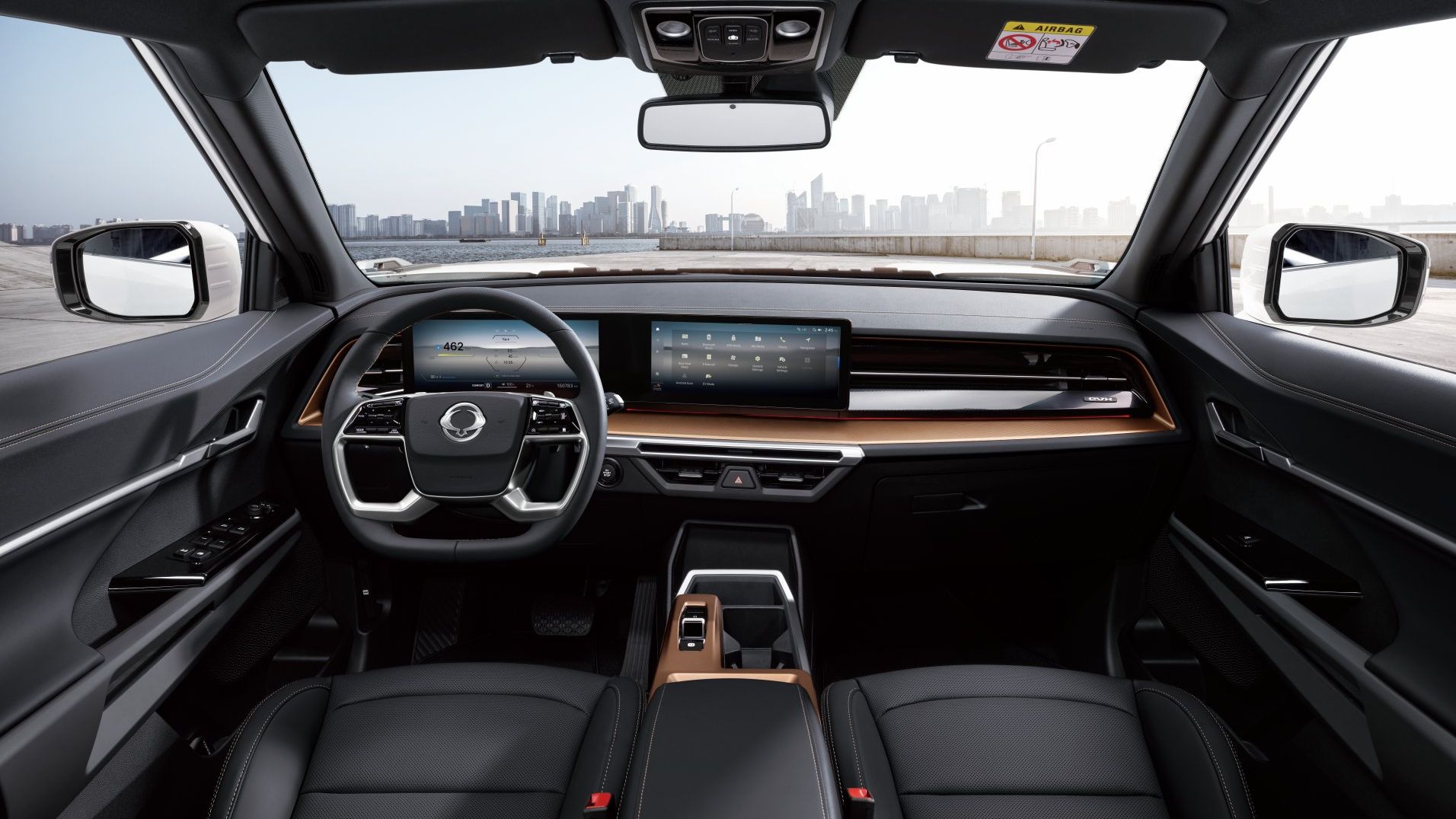 Az utastérből száműzték a háromkijelzős megoldást, és a helyét két, egyaránt 12,3 colos képernyő váltotta fel, így az EVX-ben a klímát is középen lehet állítgatni, hiszen fizikai gombokból az indítón és a vészvillogón túl nem sokat találni a műszerfalon. Összességében a belső tér letisztultabb lett, erre pedig a váltókar eltűnése is rájátszik, amelynek helyét az egyre divatosabb kapcsoló megoldásra cserélték, hiszen itt csak egy irányváltó szükséges