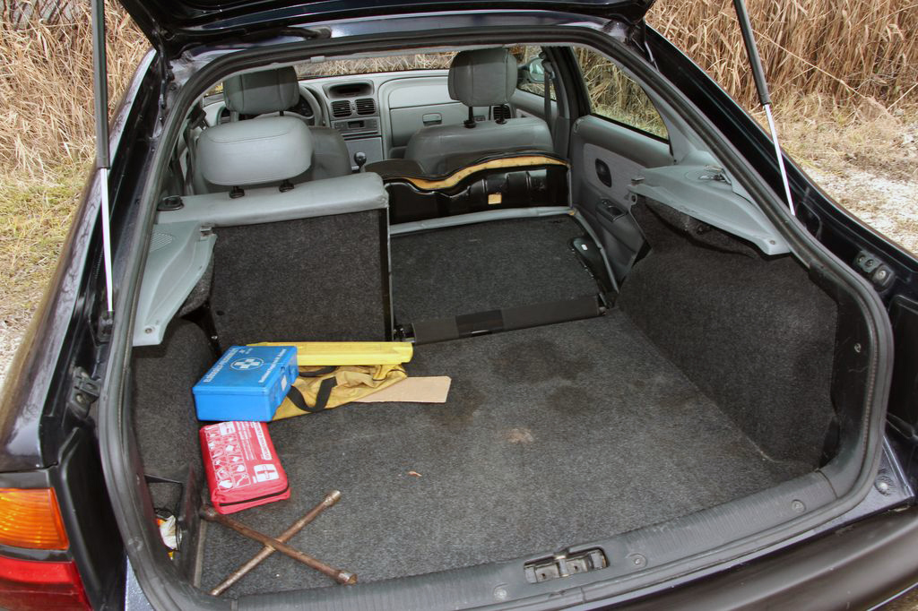 A komoly első töréshez képest egészen egyben van a motortér, az 1,6-os, 16 szelepes motor valaha élénk volt, fogyasztása korosan sem vészes, országúton 6 liter alá vihető, városban 8 liter körüli, még tempós autópályázás során is 10 l/100 km alatt marad