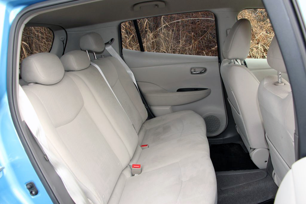 A Leaf úgy, sőt, talán sokkal jobban szolgál, mint egy hagyományos autó. Kényelmes, zsebben hordható kulccsal, az első ajtók kilincseire tett gombokkal nyitható az utastér, gombbal indítható helyezhető készenlétbe a motor. Előtte programozottan vagy akár okostelefonnal, távirányítással előhűthető, előfűthető az utastér. A „főkapcsoló” megnyomására éled a vetített műszerfal, az érintőképernyős középkonzol és persze a menetfény is, ami az első lökhárítóba, a ködfényszórók helyére tett két kis körlámpa. A főfényszóró LED-es, miként a hátsó lámpák is, az első és az oldalsó index azonban hagyományos izzós. Menet közben meghatározó a csend, városban, országúton és autópályán is némának tűnik a Leaf. A külvilág zaja, így a kerekek gördülése is beszűrődik persze, de csak kissé. A kényelmet fokozza az elöl MacPherson, hátul csatolt lengőkaros futómű hangolása is, így a Leaf vezetése, ha szokatlan módon is, de élménynek számít. Ilyen halkan, ilyen higgadt körülmények között ugyanis semmi mással nem lehet autózni, ha kívánjuk, mégis egészen komoly menetdinamikát, 11,9 másodperces 0-100 km/órás és még robbanásszerűbb városi gyorsulást tud adni. Végsebessége 145 km/óra lehet, de a Leaf nem annak kihasználására született.