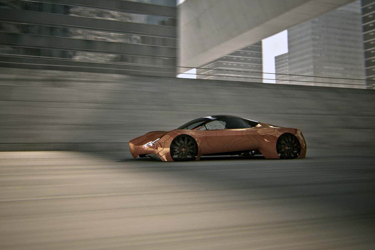 Az ifjú dizájner három éve fejlesztgeti Flake nevű tanulmányát, melyet a Verdák oldalirányban mozgó autóinak sora, a cigarettáiról lehulló hamu, valamint a BMW Gina nevű tanulmánya inspirálta elsősorban. A jelenlegi már az autó harmadik változata, ahol a mozgó karosszéria-elemek számát a korábbi négyszázról kétszázötvenre csökkentette, ezáltal a tanulmány közelebb került a megvalósíthatósághoz. A lapokat mini elektromágnesek által működtetett, nanoméretű karbonszálak mozgatják, így azok mindig a jármű mozgásának legmegfelelőbb aerodinamikai kombinációban foglalnak helyet. A lapok a légellenállás csökkentése érdekében teljesen elsimulhatnak, fékezéshez szélesen kinyílnak, kanyarodásnál a leszorítóerő növelésével segíthetnek, és még a napsugarak energiáját is begyűjtik, azaz tényleg aktívan részt vesznek a Flake mozgatásában.