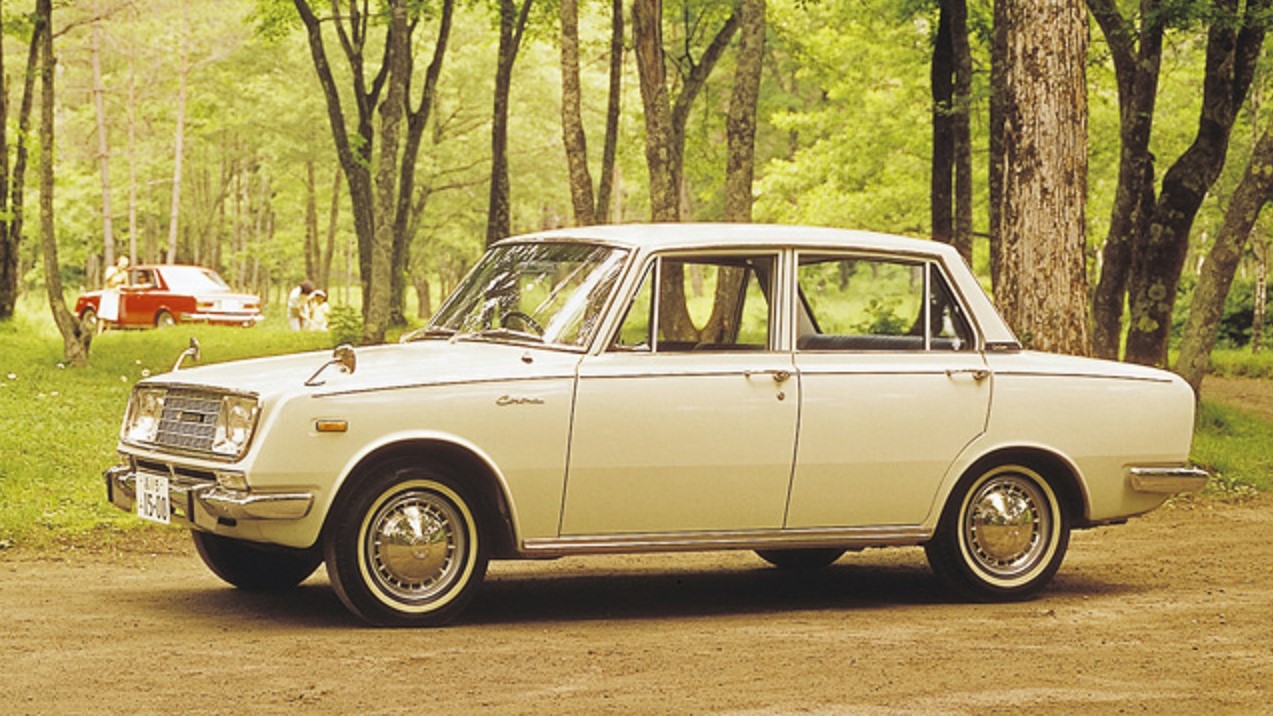 Toyota Corona 1964-ből és Toyota Corolla 1966-ból: Tojoda Soicsiro ezeknek a modelleknek a fejlesztését is megélte (Fotó: Toyota archívum)