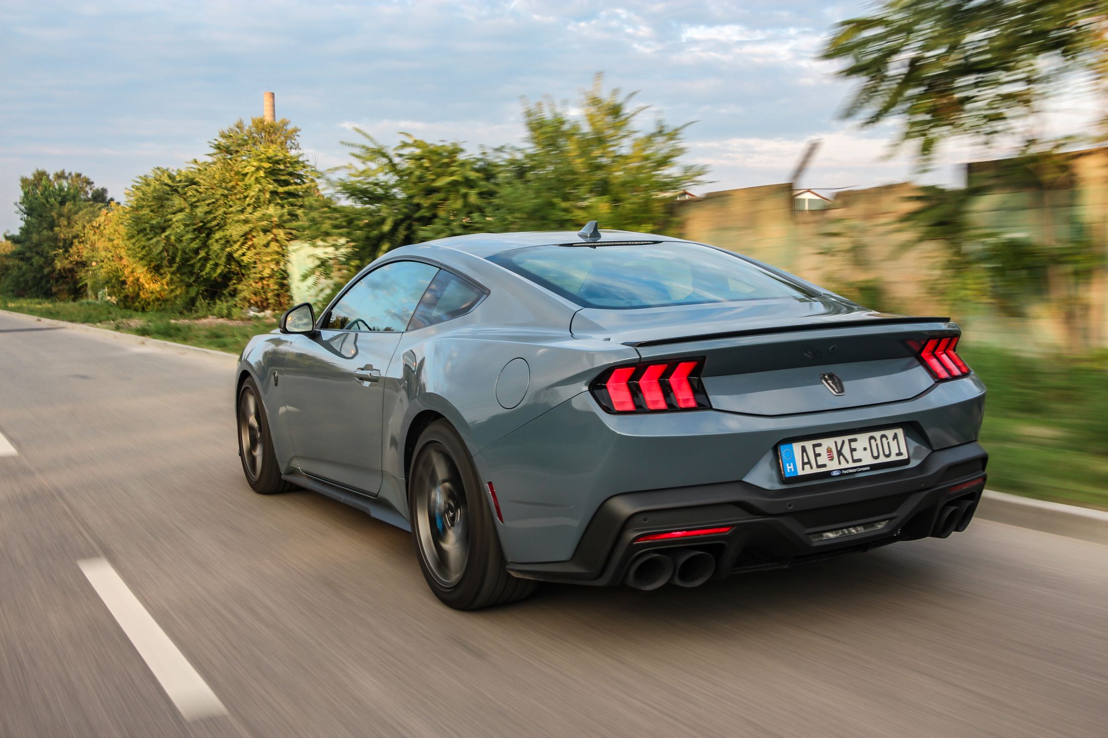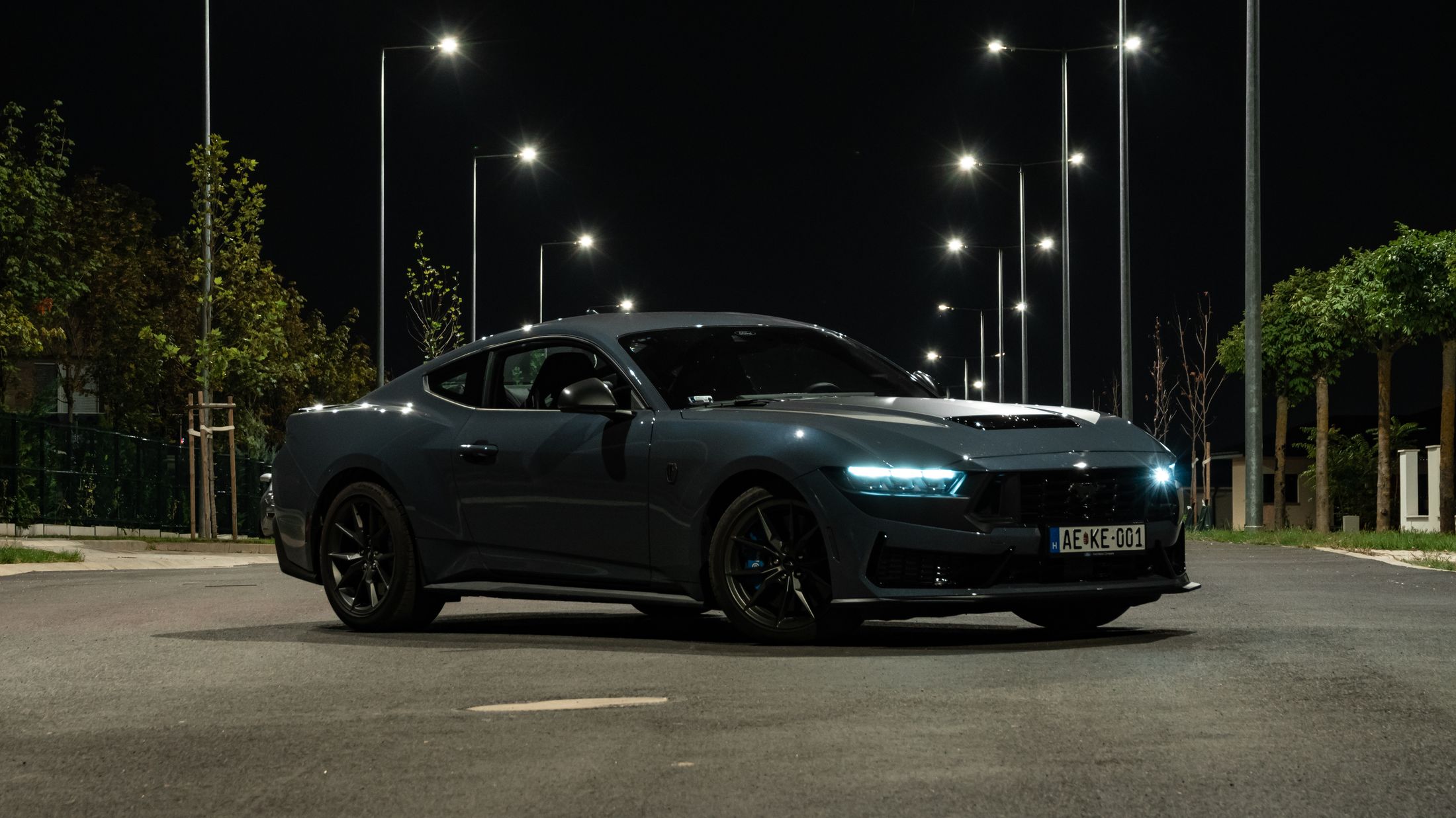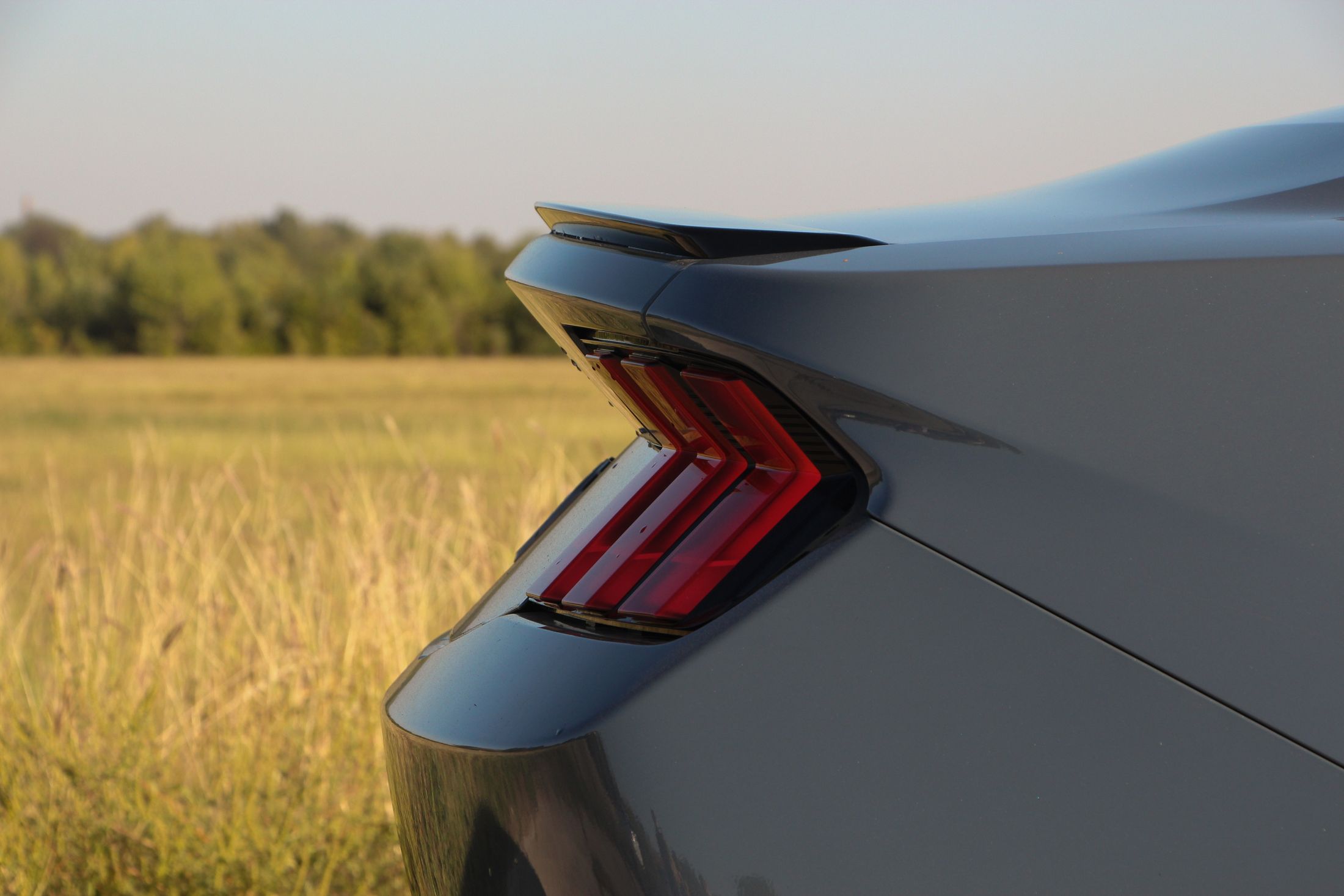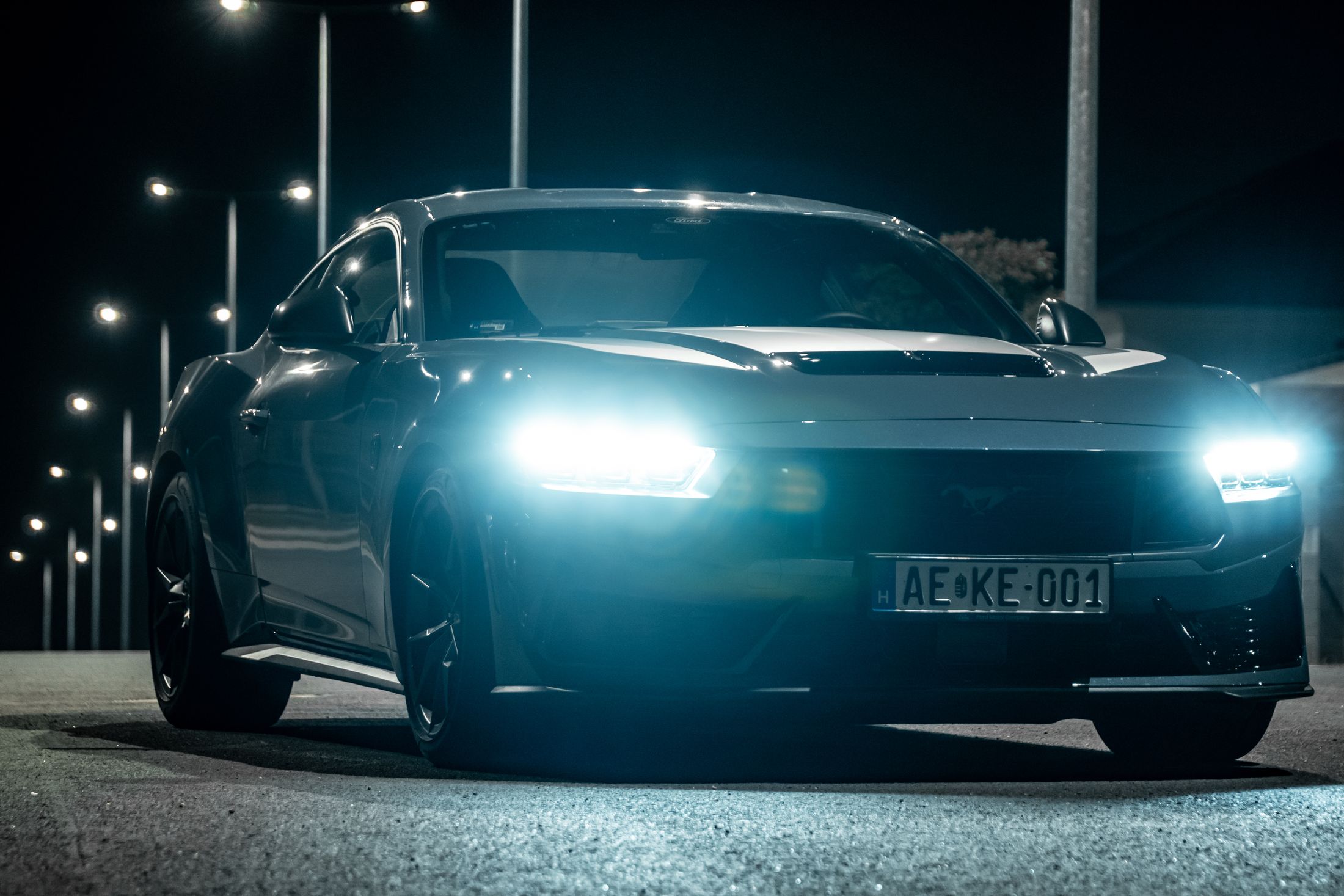 Ha engem kérdeztek az autó orráról, akkor azt kell mondjam, hogy szerintem is visszafogottabb, mintha egy kis eleganciát próbáltak volna belecsempészni az összképbe, ám a morcos tekintetéből így sem veszített. Hatványozottan igaz ez a Dark Horse változatra, amely sötét díszbetéteket kapott és más a hűtőmaszkja a GT-hez képest, illetve a lökhárítója és az abba integrált légbeömlők is eltérőek. Emellett megkülönböztető matricázást is kapott a motorháztetőn, természetesen Dark Horse felirattal.