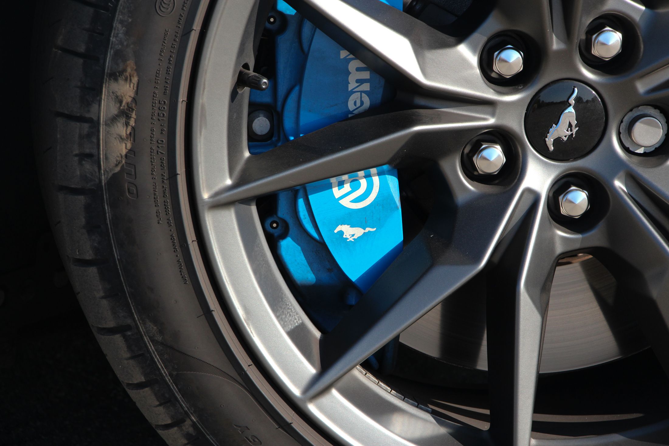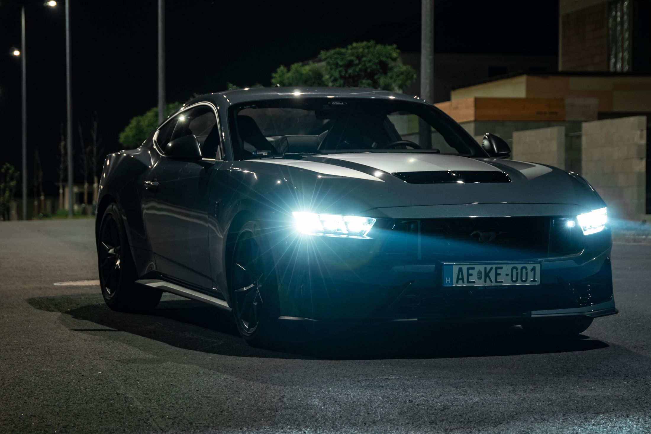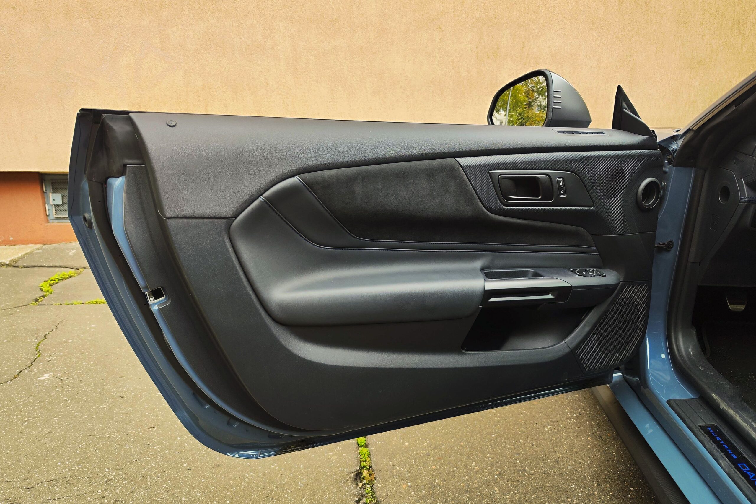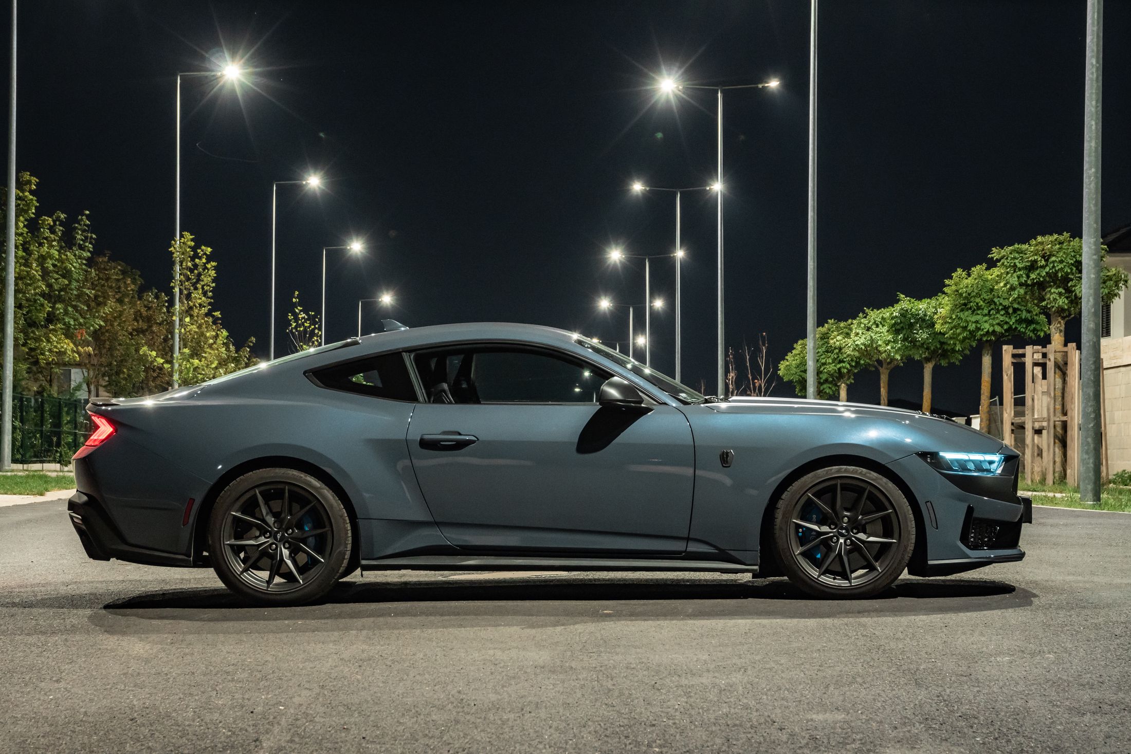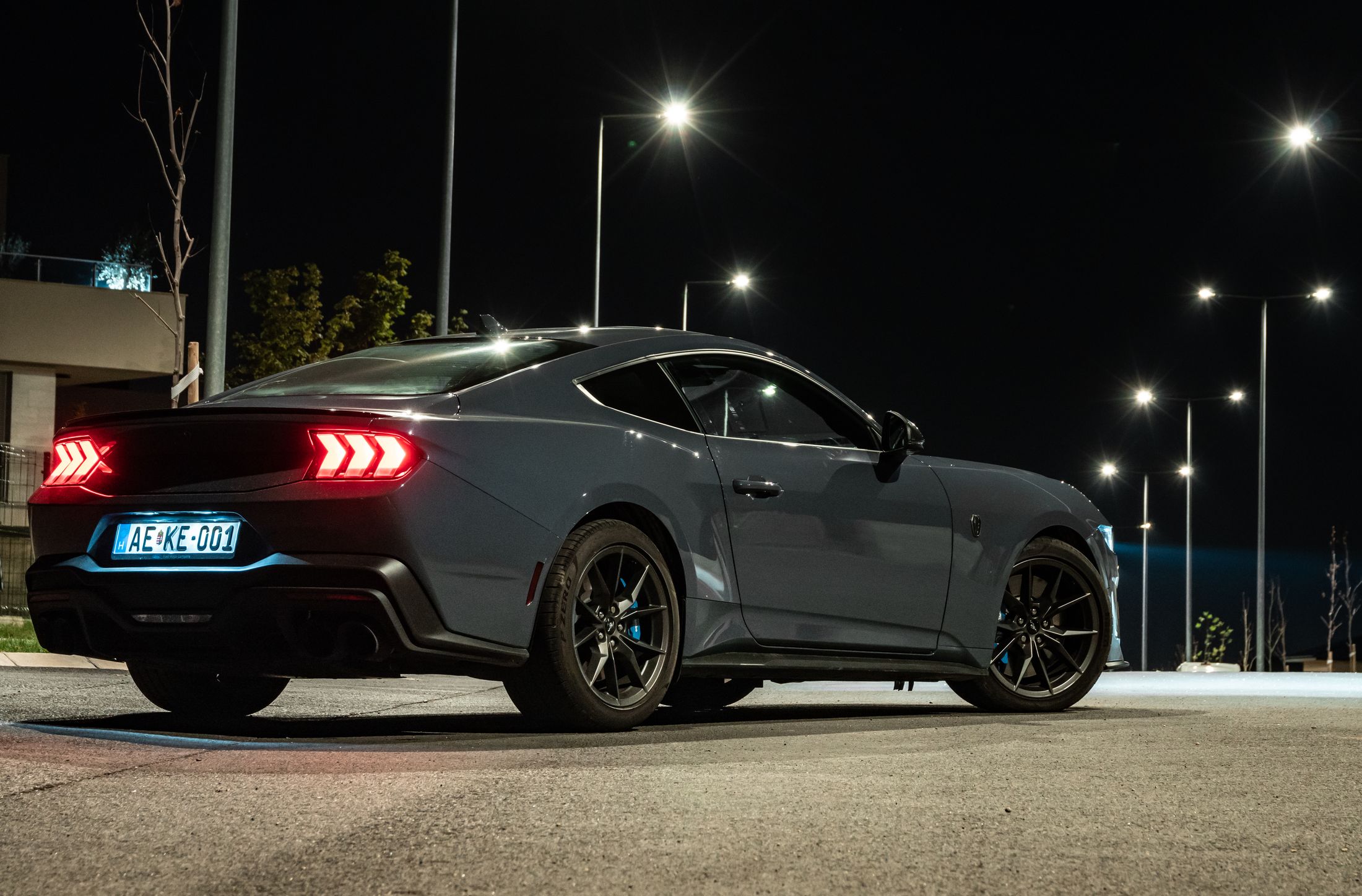 Ha engem kérdeztek az autó orráról, akkor azt kell mondjam, hogy szerintem is visszafogottabb, mintha egy kis eleganciát próbáltak volna belecsempészni az összképbe, ám a morcos tekintetéből így sem veszített. Hatványozottan igaz ez a Dark Horse változatra, amely sötét díszbetéteket kapott és más a hűtőmaszkja a GT-hez képest, illetve a lökhárítója és az abba integrált légbeömlők is eltérőek. Emellett megkülönböztető matricázást is kapott a motorháztetőn, természetesen Dark Horse felirattal.