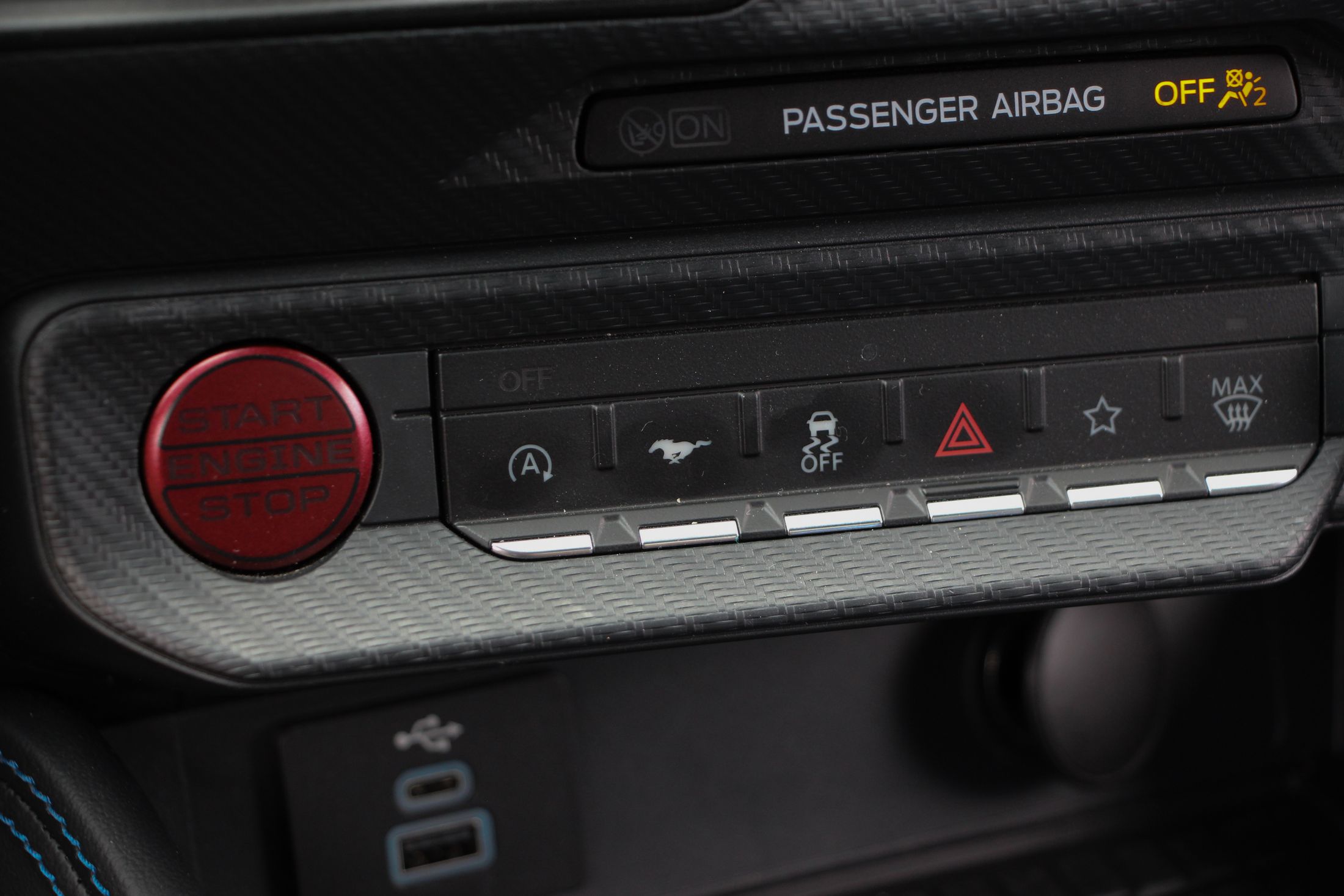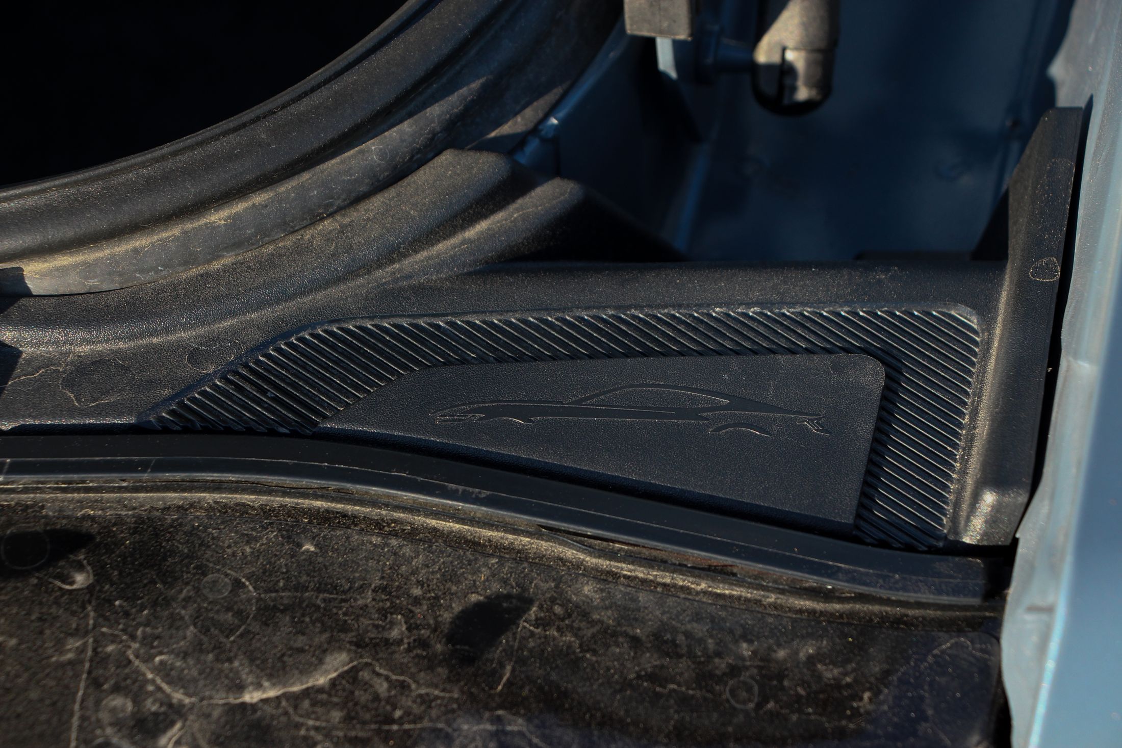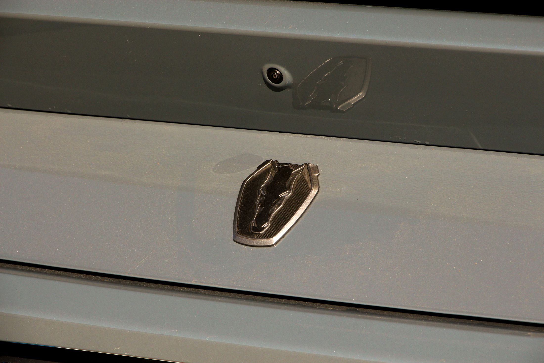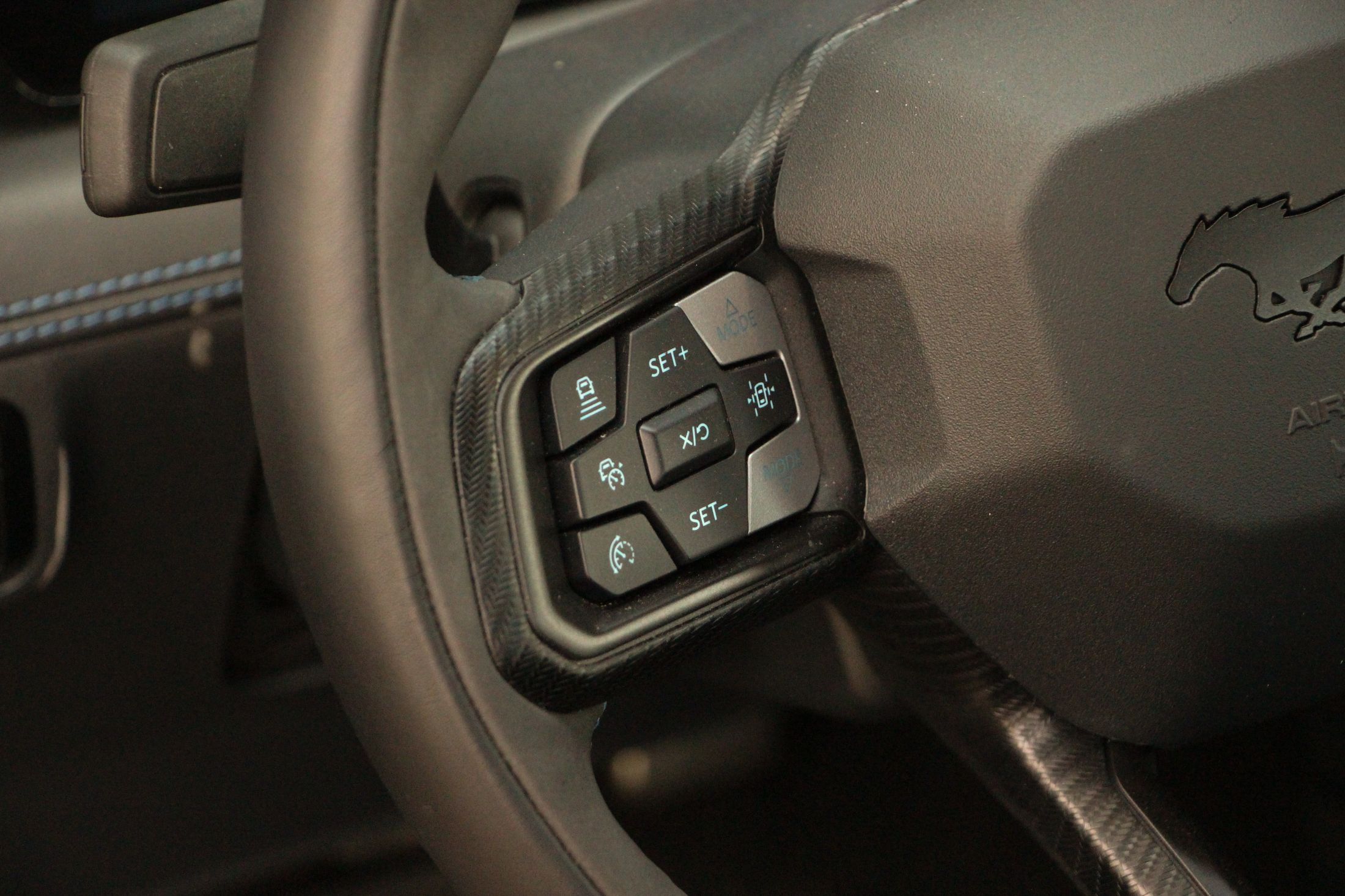 Említésre méltó még a Dark Horse egyedi lófej emblémája, ami egy sakkfigurára emlékeztet. Nem véletlenül, hiszen a kezdetek kezdetén, amikor a Mustang emblémáján agyaltak a Ford szakemberei, szóba jött a sakkfigura motívum is. Végül nem amellett döntöttek, de most láthatjuk milyen lett volna ha… Persze az orrán ott virít a vágtató vadlovacska is.
