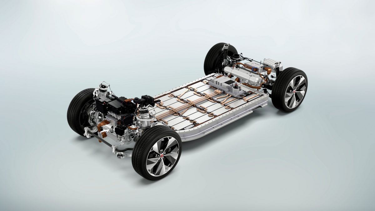 A forma igazi kupé-SUV, légellenállásjavító részletekkel, 0,29-es alaktényezővel, LED fényszórókkal, hátul alacsony csíklámpákkal, elöl pedig hatalmas és jellegzetes Jaguar maszkkal. A lényeg természetesen a hajtáslánc: két villanymotor is van, tengelyenként egy-egy, teljesen azonos, 200 lóerővel és 348 Nm nyomatékkal, vagyis