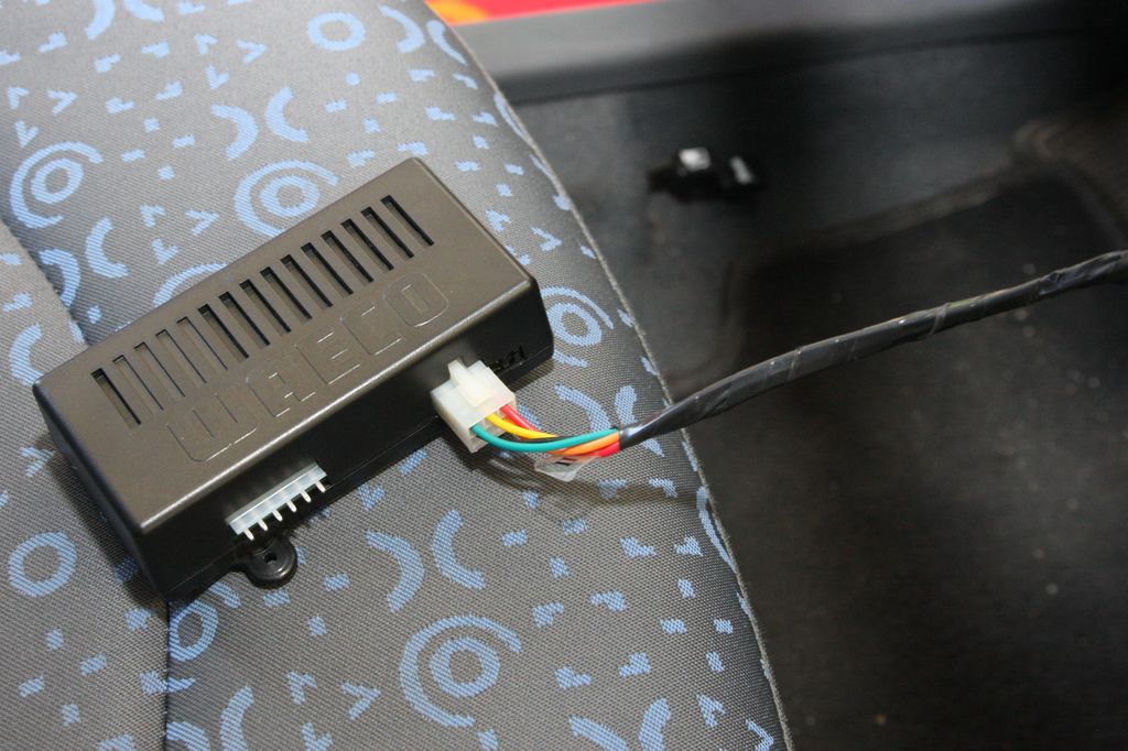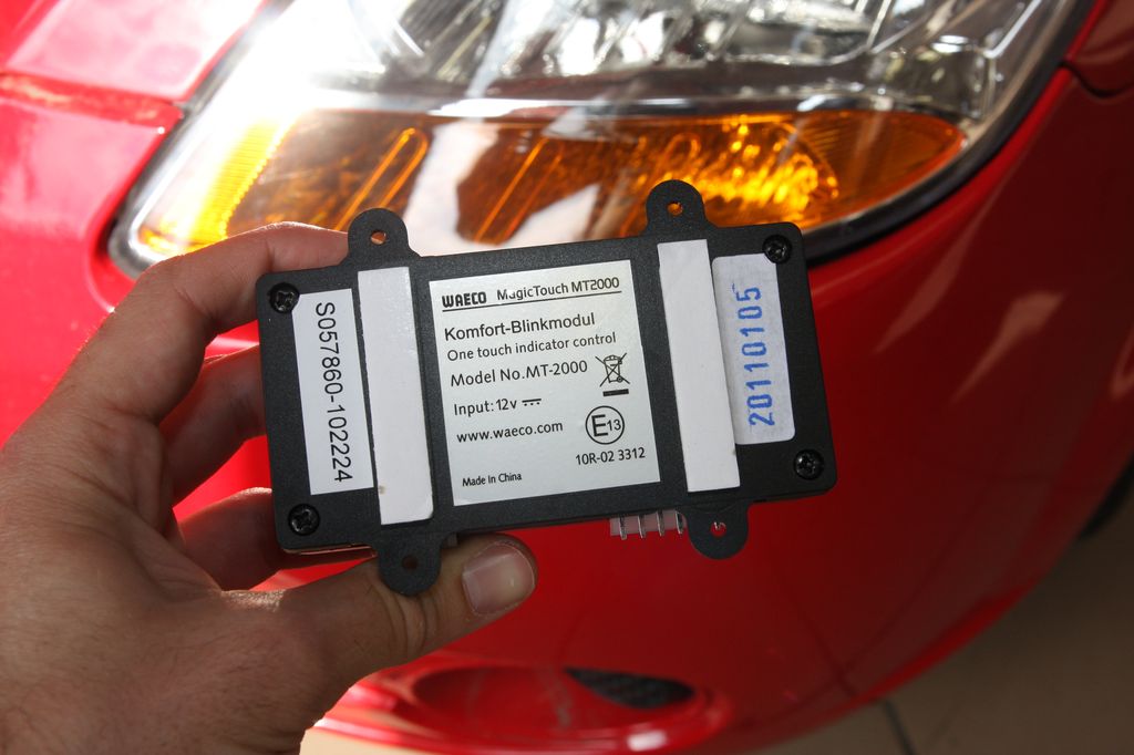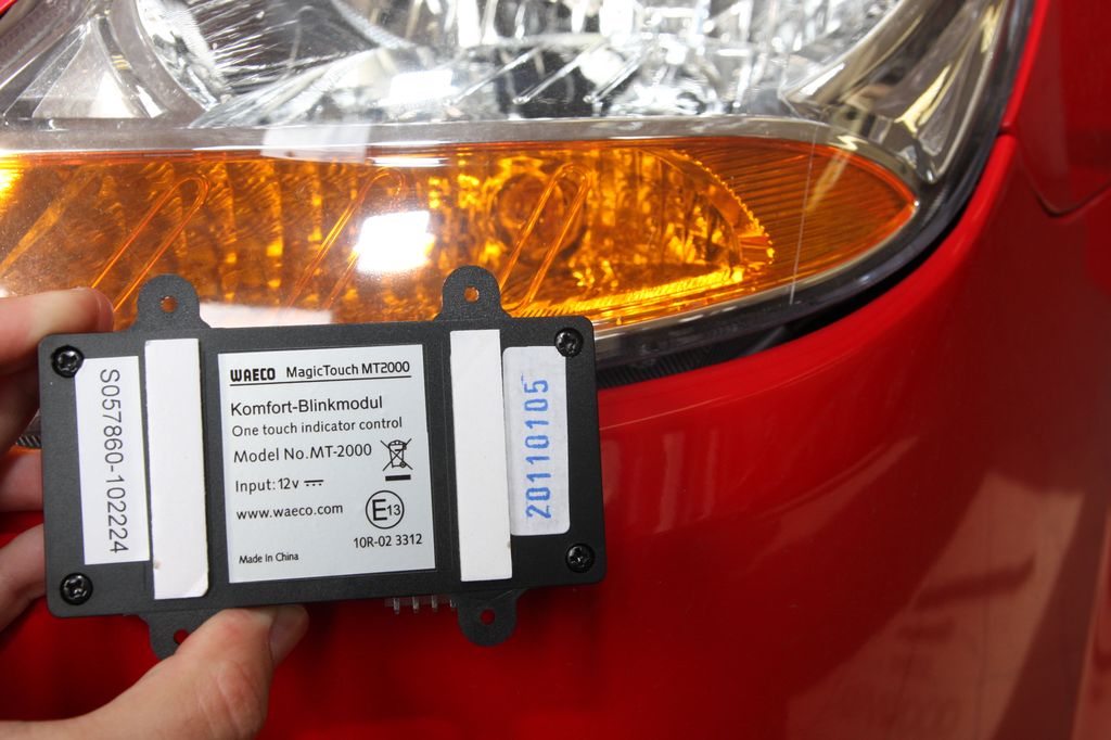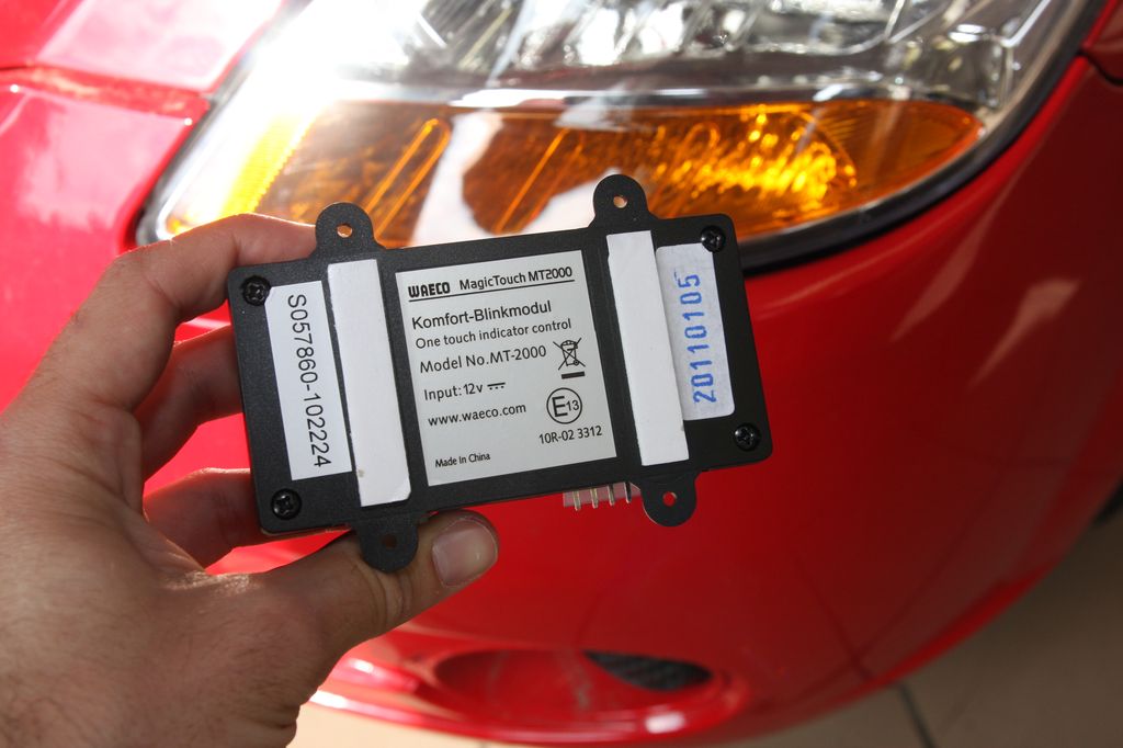 "Ha szerencsénk van, a vészvillogónál összefutnak az irányjelző oldalankénti kábelei, s a lepattintható középkonzol mögé mehet is az egész rendszer" - hangzott a tapasztalt műhelyes véleménye. Szerencsénk volt, valóban összefutottak a kívánt kábelek ott, s így oda be is lehetett kötni, egyszerűen el is lehetett helyezni a modult, ami egyébként a pozitív és a negatív impulzus fogadására, illetve ismétlésére is fel van készítve, mindössze megfelelően kell beállítani a jumpereit.