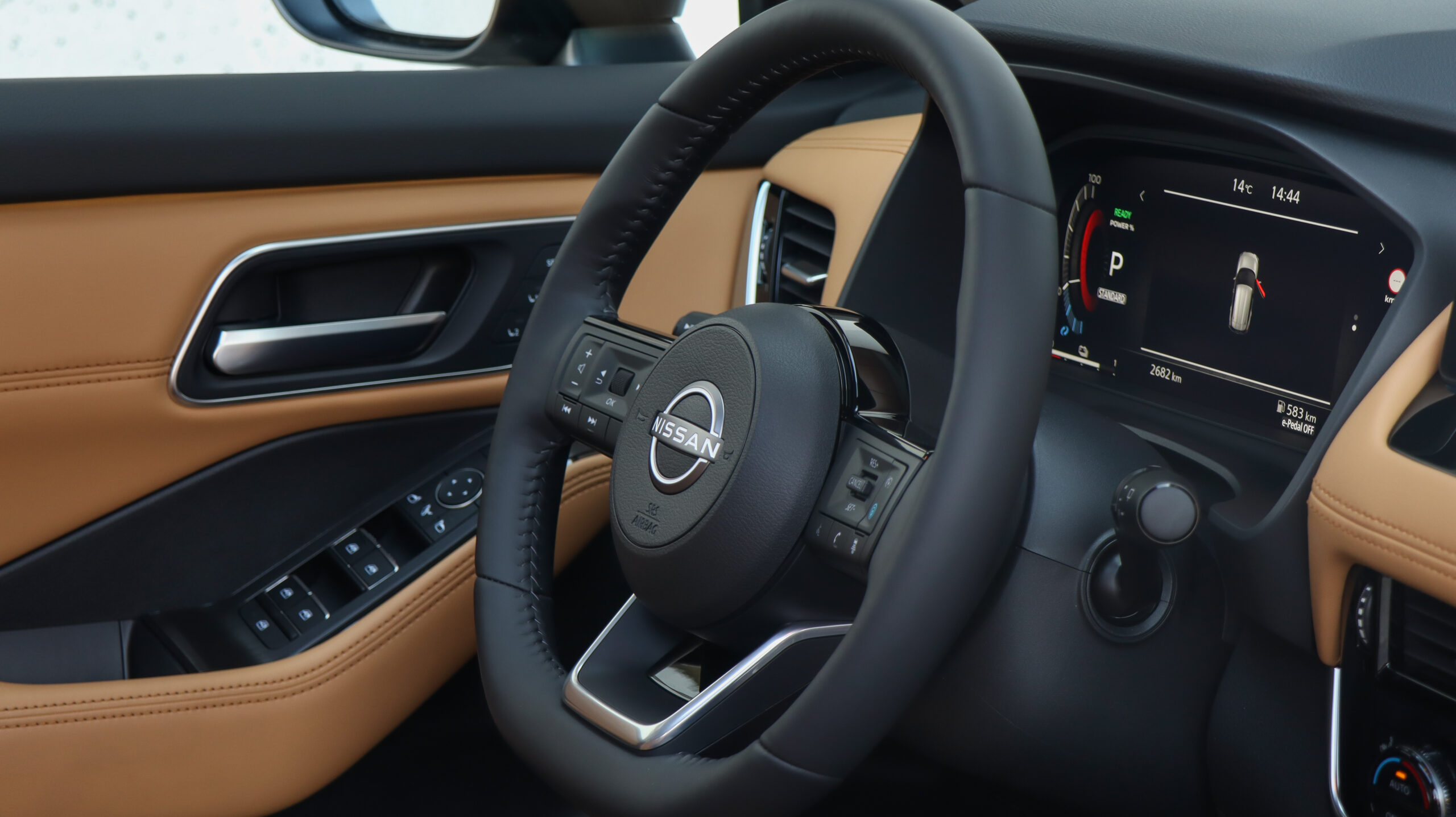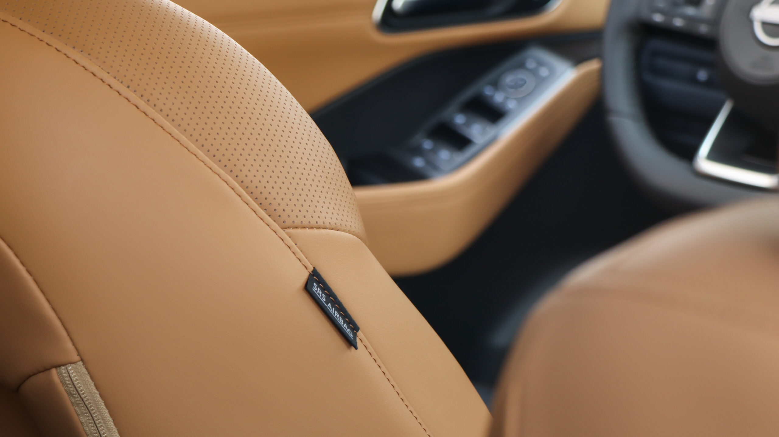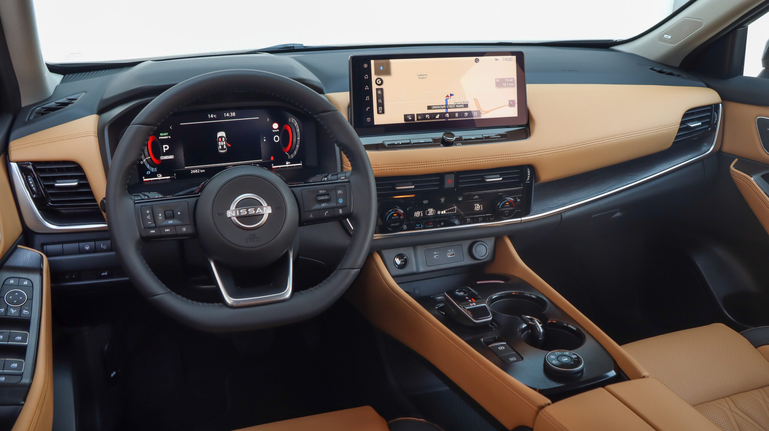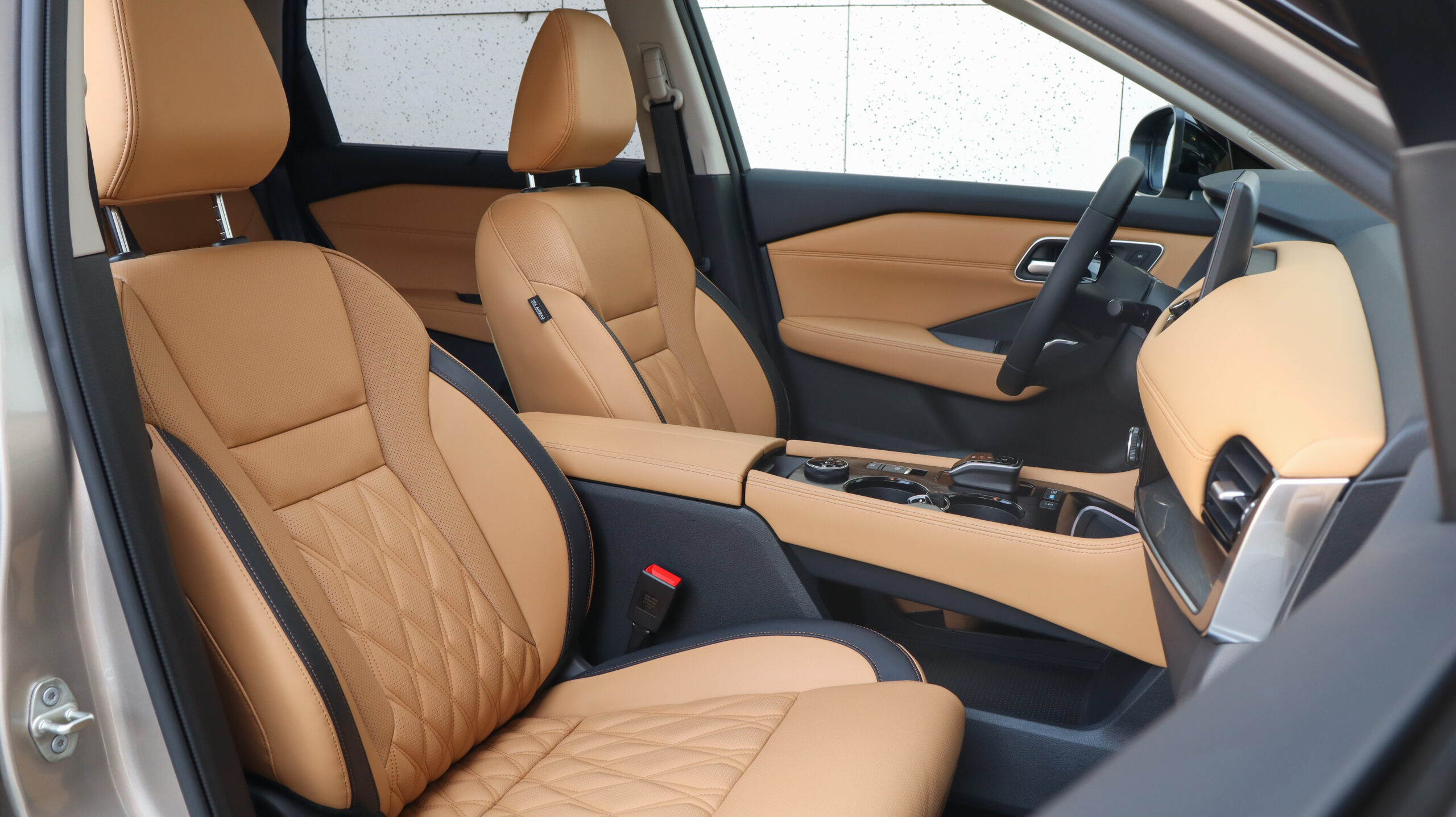 A barna Nappa bőr kárpit a hibrid sajátja, ott is a csúcsverzióé, az új X-Trail beltere gusztusos és kényelmes lett