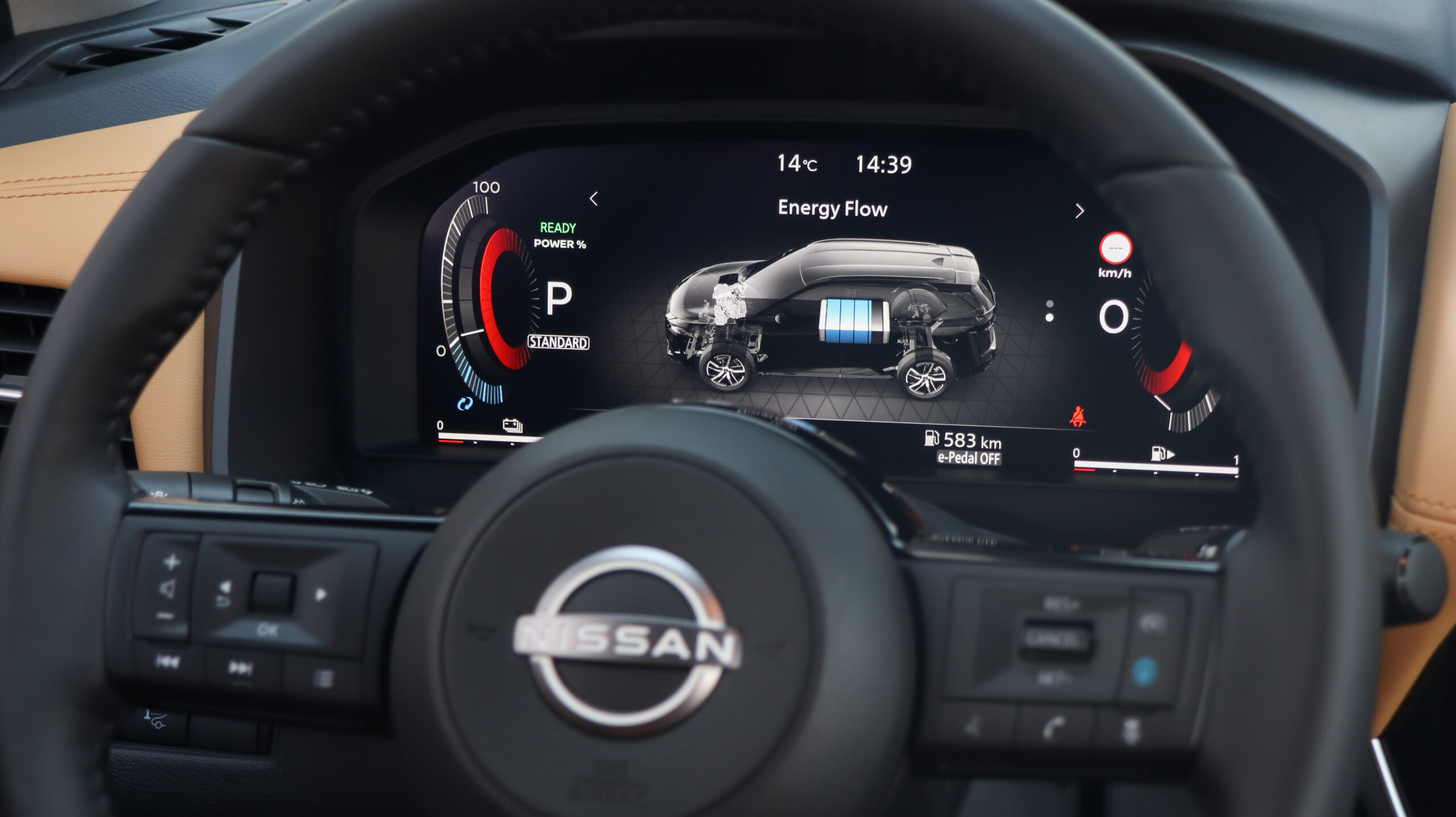 Itt is megvan az a benzinmotor, ami az alapverzióban, de mivel itt nem kell közvetlenül hajtania, más a hangolása. Míg a "benzines", azaz a benzinmotorral hajtó 300 Nm mellett ad 120 kW-ot, azaz 163 lóerőt, az e-POWER esetén a - csak generátoron keresztüli áramfejlesztésre szolgáló - benzinmotor 116 kW-ot ad, 250 Nm mellett, hajszálnyit alacsonyabb fordulaton. Az e-POWER alapesetben egy első, 150 kW-os, 330 Nm azonnali nyomatékú villanymotorral hajt, ehhez társul még az e-4ORCE esetén a hátsó, 100 kW-os (136 LE), 195 Nm nyomatékú villanymotor. A teljesítmények és a nyomatékok nem adhatók teljesen össze, de a míg az elöl hajtó e-POWER rendszerteljesítménye az első villanymotoréval egyező (204 LE), az összkerekesé 213 lóerő. Utóbbi nem csak az első-hátsó, hanem az oldalankénti nyomatékosztásra is képes, így - ahogyan azt tereppályán is kipróbálhattuk, akkor is gond nélkül előre tud jutni, ha az egyik oldalon nem tapadnak kellően a kerekei. A kapcsolás rekord gyors és észrevétlen, ahogyan a benzinmotor beindulása is.