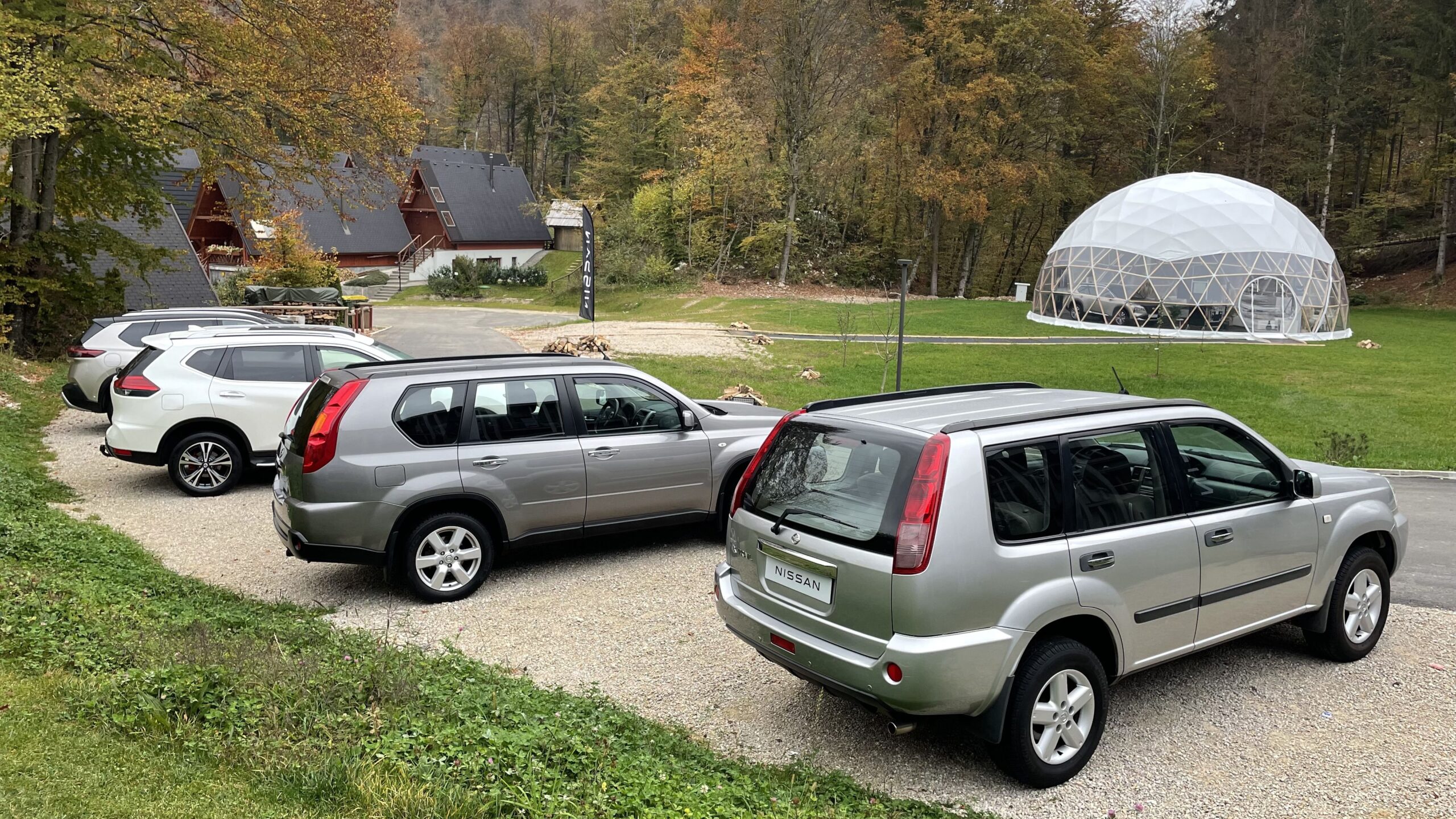 Az e-POWER hatalmas előnye, hogy a vezethetősége villanyautós, hiszen valóban villanymotor hajt, az e4ORCE esetén ugyebár kettő is, amivel nem csak jobb gyorsulás, hanem fokozott és a tengelyek között kiegyensúlyozottabb fékhatást adó áramtermelés érhető el. Kuplung és sebességváltó nincs a hajtásláncban, de ha nagy gázt adunk, vagy tartósan sok erőt használunk, például emelkedőn, akkor azért hallhatóan pörög az áramtermeléshez a benzines. A Nissan hagyományai szerint egypedálos (ePedal) vezethetőség is kapcsolható, nekem mondjuk jobban tetszett a hagyományos, aminél pedig a B-fokozat adhat fokozott visszatöltést, így motorfék-hatást. Az elöl MacPherson, hátul multilink futóműves X-Trail vezethetősége a hazaiaknál sokkal jobb szlovén utakon a 20 colos csúcsfelnikkel is kellemes volt, nem érződött a csúcsverzió jelentős, átlagtermetű sofőrrel is közel 2 tonnás saját tömege. A Nappa bőr tesztautó a csendes, pontosabban jól elszigetelt (aktív zajkioltással is halkabbá tett) motorral tényleg azt az érzést keltette, hogy már csupán az autóba beülve is elmenekülhetünk a világ elől, hiszen kizárhatjuk a város zaját. Bár a bruttó 2,1, nettó 1,8 kWh-s akkumulátorral csak rövidebb távokat tud megtenni árammal, arra sokszor egymás után is képes, hiszen benzinmotorjával önmagát tölti, városi üzemben szinte némán. Zöld rendszámra persze nem jogosult, de akkor is megállja a helyét, ha hosszabb útra mennénk vele.