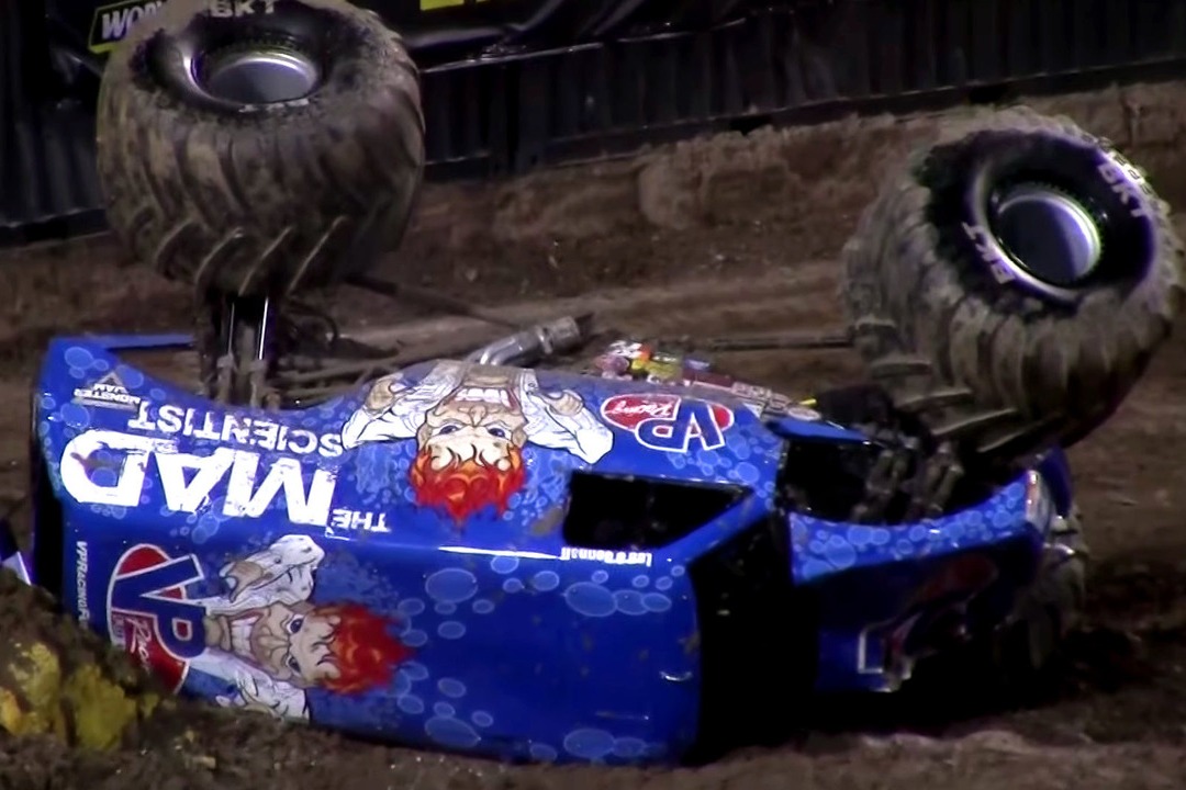 Valahogy egyik amerikai autós sportot sem tudjuk túl komolyan venni európai szemmel, náluk mégis mindegyiket tízezrek követik. Ilyen a Monster Truck verseny is, ami teljesen értelmetlen, látszólag cél nélküli autózást jelent néhány dombocska között, e mögött azonban rengeteg felkészülés és komoly technikai háttér lapul. Tekintve az autókat, amik házméretű monstrumok, teljesen a nulláról, csővázas karosszériára építve, óriási V8-as motorokkal a gyomrukban. Több tonnát röptetnek a levegőben és jellemzően a földet érés is sikerül, akkor is, ha először csak egy kerék érkezik le. [BANNER type="1"] A Las Vegas-i versenyhétvégén már több rekord is született korábban, például 2011-ben a Grave Digger nevű monstrummal ugrották meg a legelső hátra szaltót, most pedig az előre szaltózást mutatta be Lee O’Donnell. Leírni egyszerűbb, mint megcsinálni, kerékpárral, vagy motorral sem egyszerű, autóval meg a szerencse is muszáj, hogy mellénk álljon. A mutatvány látszólag véletlen, O’Donnell szerint viszont begyakorolt mutatványsort láthattunk. A domboldalnak kétkerekezve kellett nekimennie, hogy csak a hátsó kerekek ütközzenek a rámpának. A sebesség és a beérkezési szög is kitűnő volt, a földet érés sikerült, a tömeg pedig megőrült a mutatványtól. Valószínűleg megsérült a futómű a leérkezésnél, de az adrenalin is közrejátszhatott a sofőrnél, mert a következő mozdulatot nagyon elbénázta és hanyatt vágta a monstrumot.
