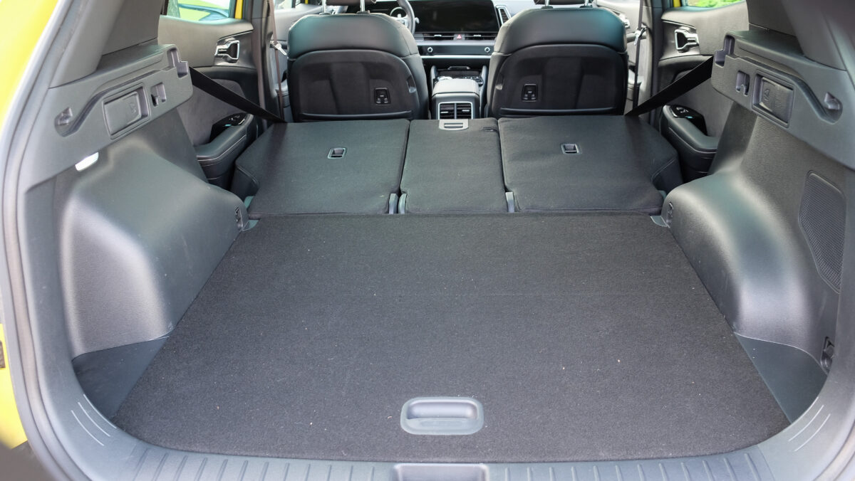 Bár a lágy hibrid esetén kisebb a csomagtér, mint az alapverziónál, akkumulátora mindössze 29 litert vesz el. Így is 562 literes az alapméret, a hátulról is indítható, szinte síkba fekvő ülésdöntéssel 1751 literesre, 1,7 méter hosszúra növelhető a raktér, ez már elég tisztességes méret. A Sportage tágas családi autó méretű, divatos külsejű, a 180 lóerős turbómotorral pedig elég jól is mozog. Nem mellesleg egész palettáján csakis 1,6-os, négyhengeres motorok szerepelnek, a 180 lóerős lágy hibrid az öntöltő és a plug-in hybrid alatti csúcs, ez még 7 fokozatú "száraz" duplakuplungos váltót kap, és emiatt egy kicsit idegesen viselkedik.