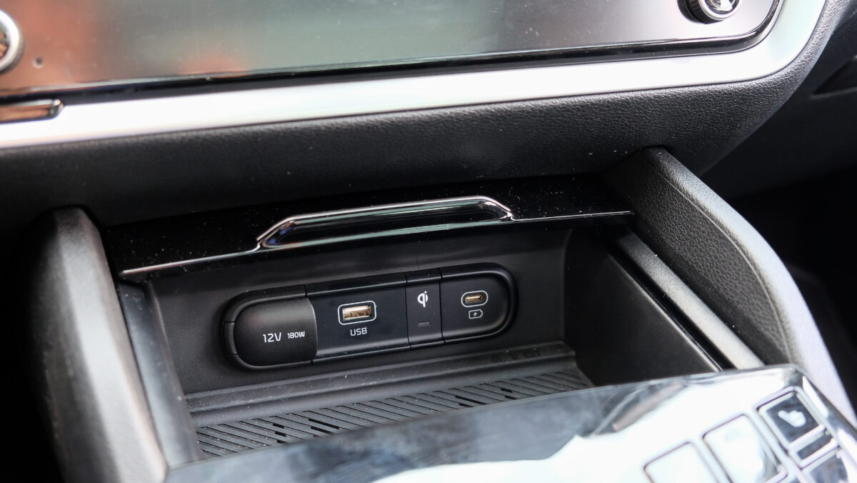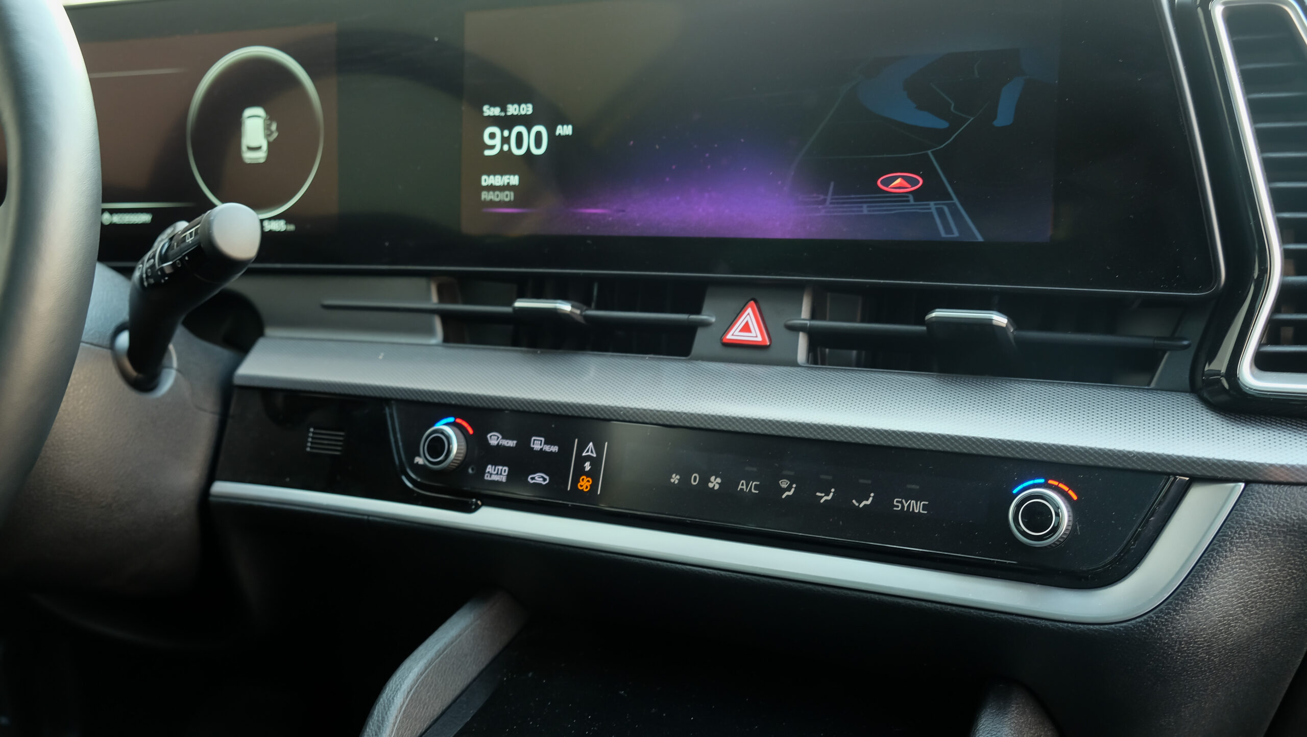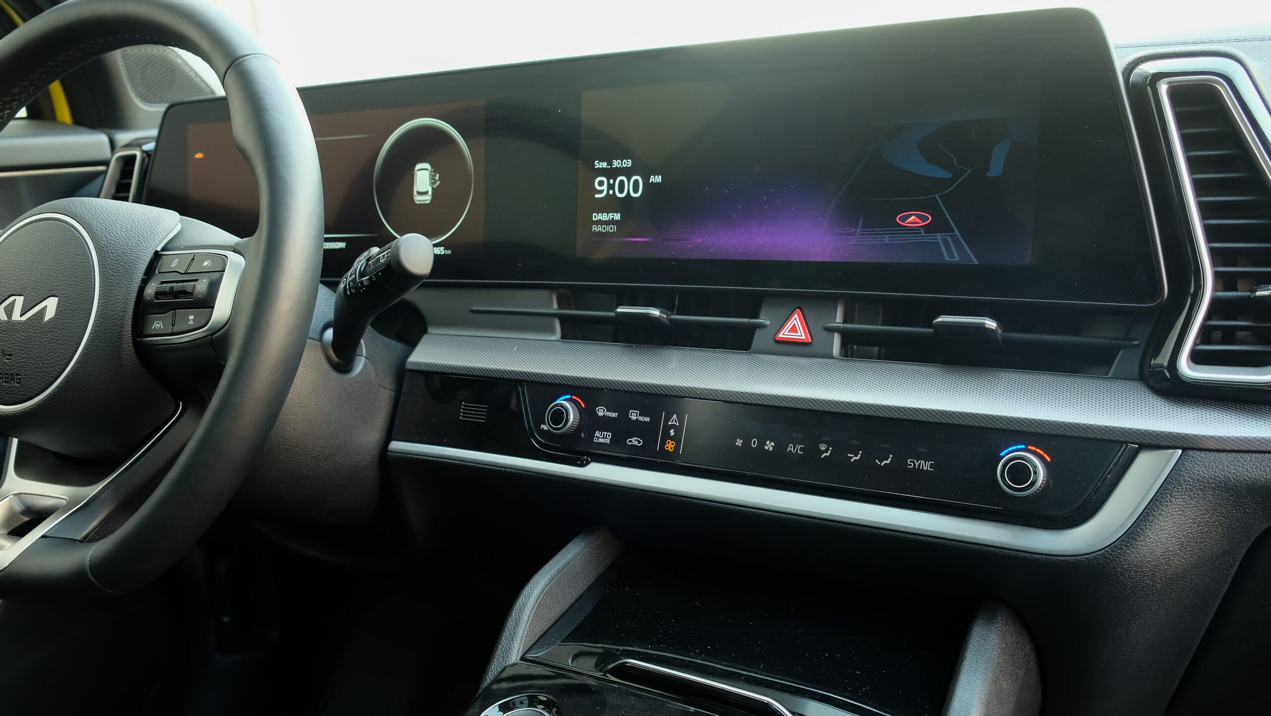 a műszerfal az EV6-ból ismert ívelt kijelzős, lapozható menüs középkonzollal, változtatható képű műszerblokkal, aminek grafikáját és gyorsaságát nem érheti kritika.
