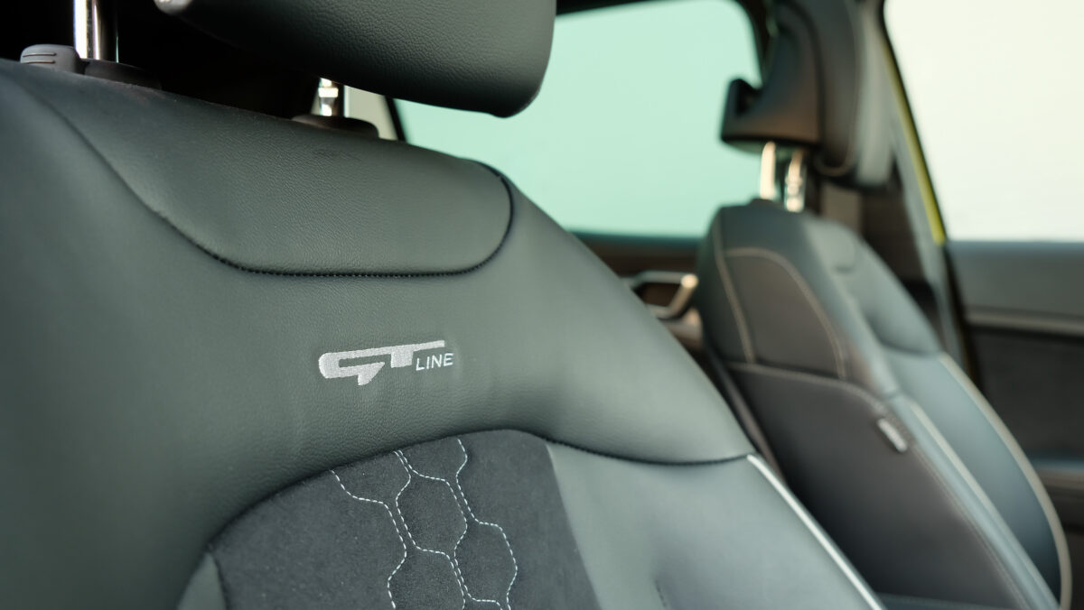 A szélesség az utastérben is visszaköszön, az első ajtók között csaknem 1,6 méteren terpeszkedhetünk, a középkonzol nagyautósan vaskos, mégsem csökkenti a lábteret fájóan. A GT-Line verzió kívülre is egyedi hűtőmaszkot, másféle körbeműanyagozást ad, mint az "alap", de belül is egyértelmű azonosító a vágott aljú, GT-Line feliratos kormánykerék.