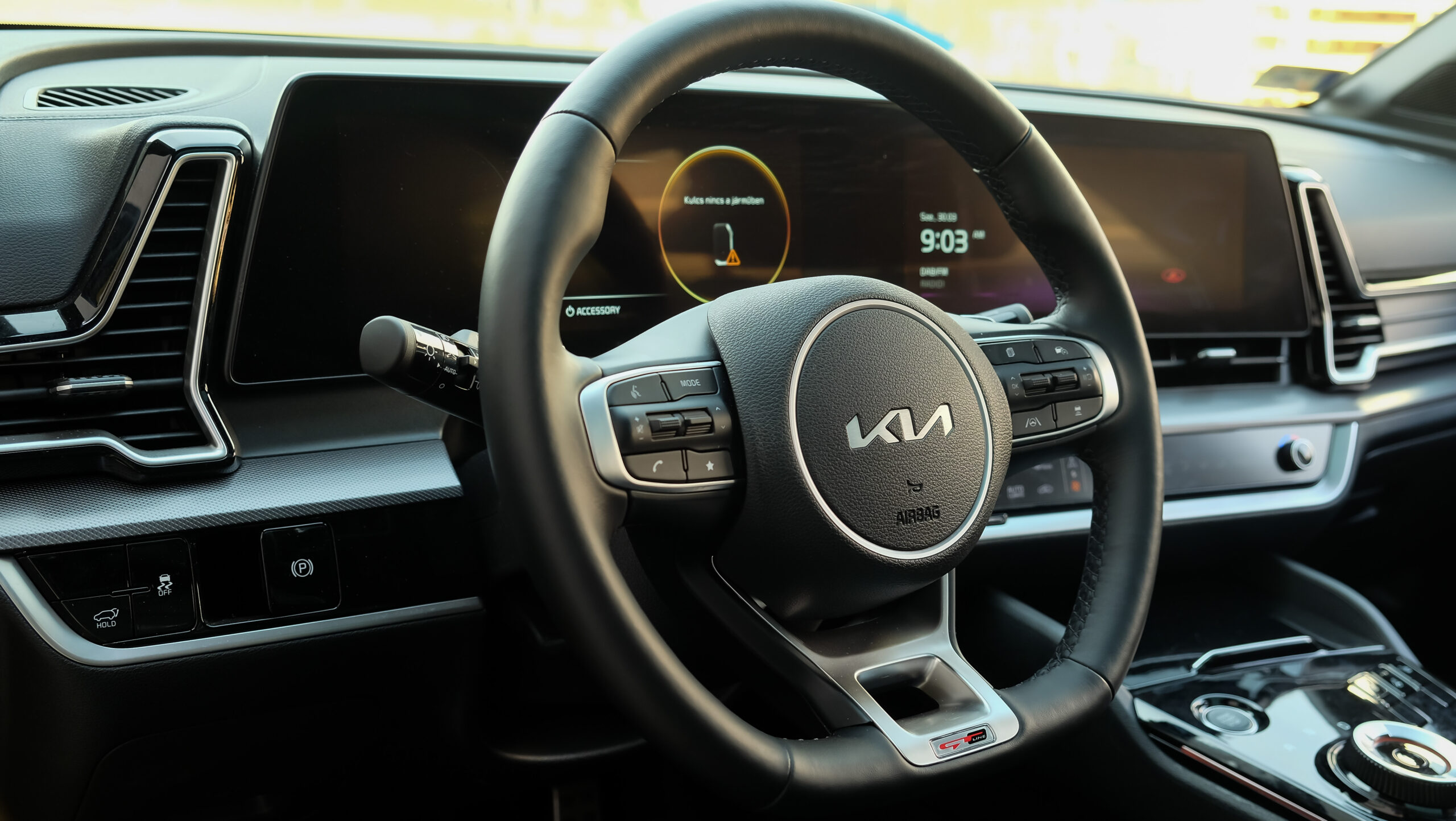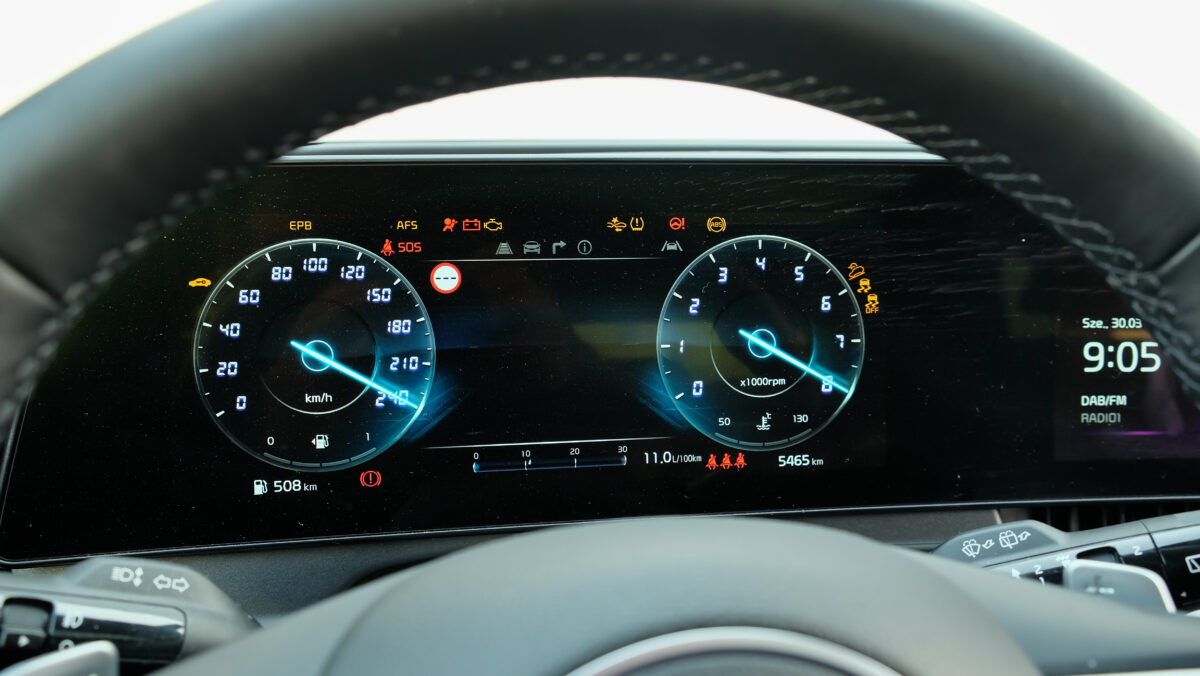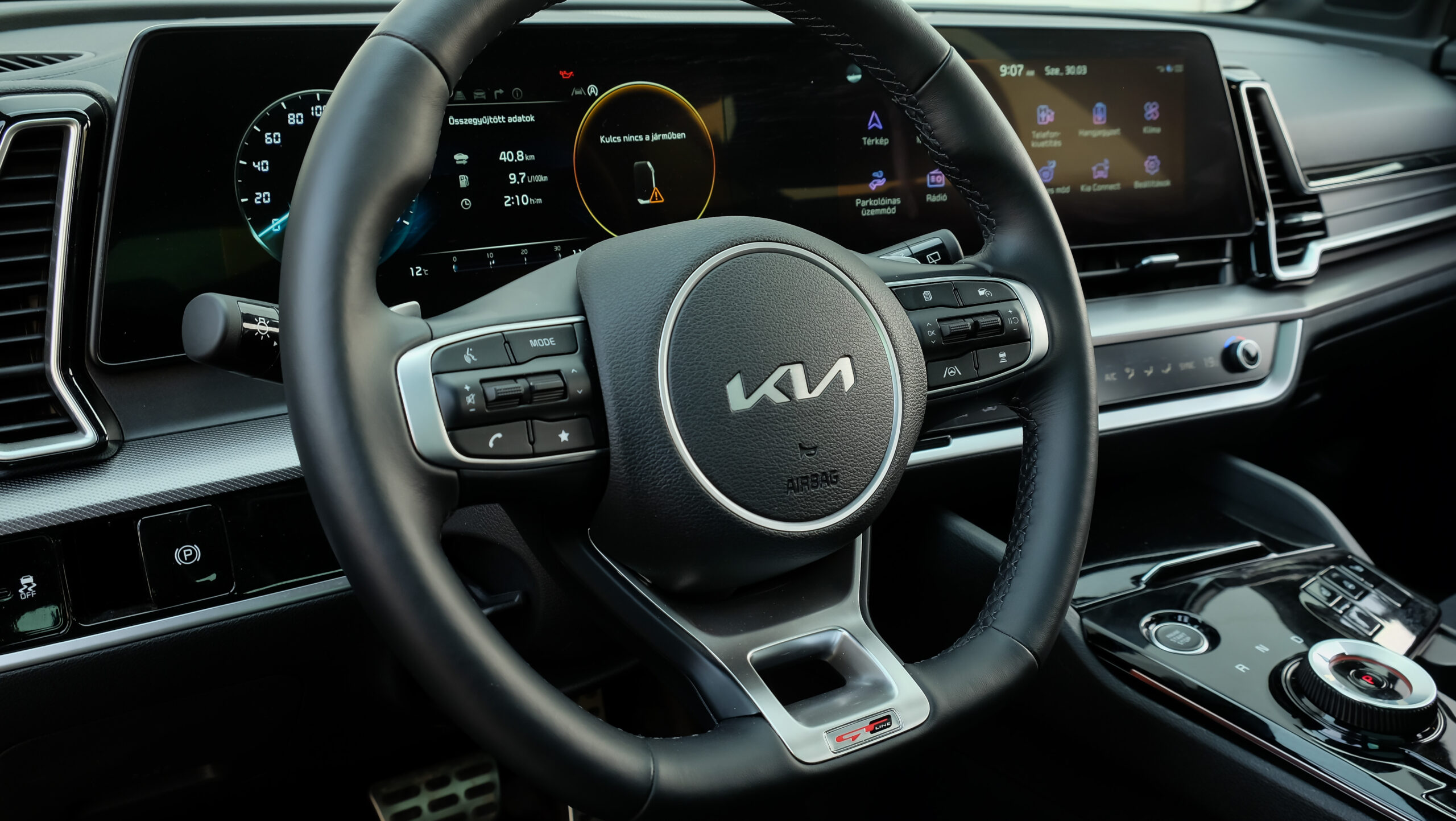 A váltó bár láthatóan precíz szerkezet, az amúgy élénk motorral (nyilván az emissziós sanyargatás eredményeként) épp azokat az ügyetlenkedéseket mutatja, amit legtöbbször a VW-konszern mai DSG egységei kapcsán tapasztalunk. Hiába a már 1500/perc fordulattól elérhető 265 Nm nyomaték és az 5500/percnél érkező, addig egyenletesen felépülő csúcsteljesítmény, a Sportage nem minden esetben gyors. Az irányváltások lassúak, s hiába a jelentős nyomaték, a váltó bizonyos esetekben, például 120-szal az érdi emelkedőn hezitál a fokozatok, ott épp a hatodik és a hetedik között. Áttételezése ugyanakkor eltalált, a 130 km/órás utazótempó 2500/perc fordulattal és a motor kapcsán csendesen futható, a szélzaj viszont jelentős a nem szerény monstrummal. 130-nál már a fogyasztás is 9-10 liter közötti, ahogyan városban is hasonló tapasztalható, ami persze nem rossz egy 180 lóerős, 100-ra 9 másodperc alatt érő, összkerékhajtású SUV-val, de nem is szerény. A vegyes WLTP fogyasztás 6,9-7,2 l/100 km, ez akár hozható is lehet, ugyanis budapesti és autópályás használattal 8,3 l/100 km tesztfogyasztás adódott, mindössze annyi trükkel, hogy nem ragaszkodtam autópályán a 130 km/órás tempóhoz, lejtőn jártam fölötte is, emelkedőn pedig alatta is.