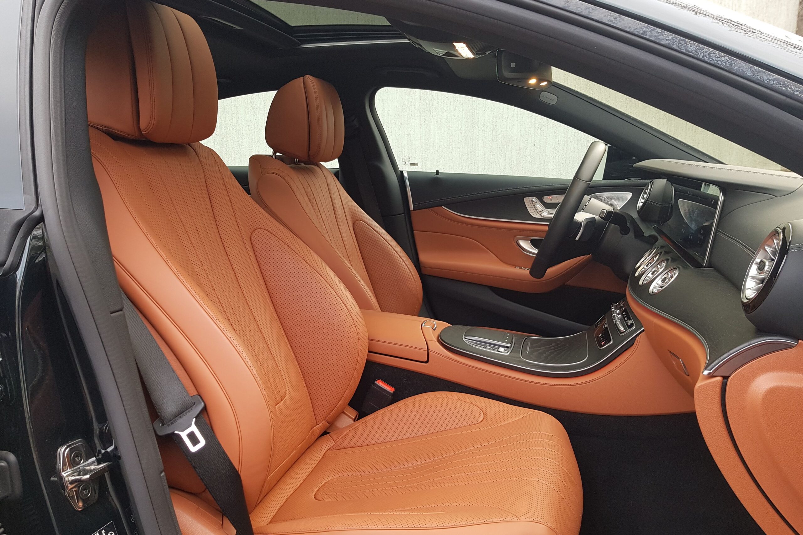 Fantasztikus az a kényelem, amit az ülések nyújtanak elöl és hátul egyaránt. Elöl szellőztethető, fűthető, masszírozós, barna bőrrel burkolt fotelekben lehet helyet foglalni, amelyek ráadásul aktív oldaltámaszokkal ölelnek a kanyarokban. Nagyszerű érzés, és ugyan hátul nincsenek ilyen lehetőségek, de azért a fűthetőség ott is rendelkezésre áll. Bár hivatalosan öt személyes az autó, azért a hátsó kialakítás igazából két ember számára kényelmes. A kupéság viszont rendesen lecsökkenti a fejteret elöl és hátul is, de ez is megszokható, az alacsonyabb termetűeket pedig nem is fogja zavarni. Szintén az egyedi karosszéria miatt a csomagtér 520 litere nem tűnik oly nagynak, főleg azért, mert inkább hosszan, alagútszerűen nyúlik hátra, ahol persze osztottan dönthetők a hátsó ülések, ha valami ennyire hosszú tárgy szállítására vetemedne a tulaj. Szóval nem túl praktikus, de a szépség oltárán megérte beáldozni.