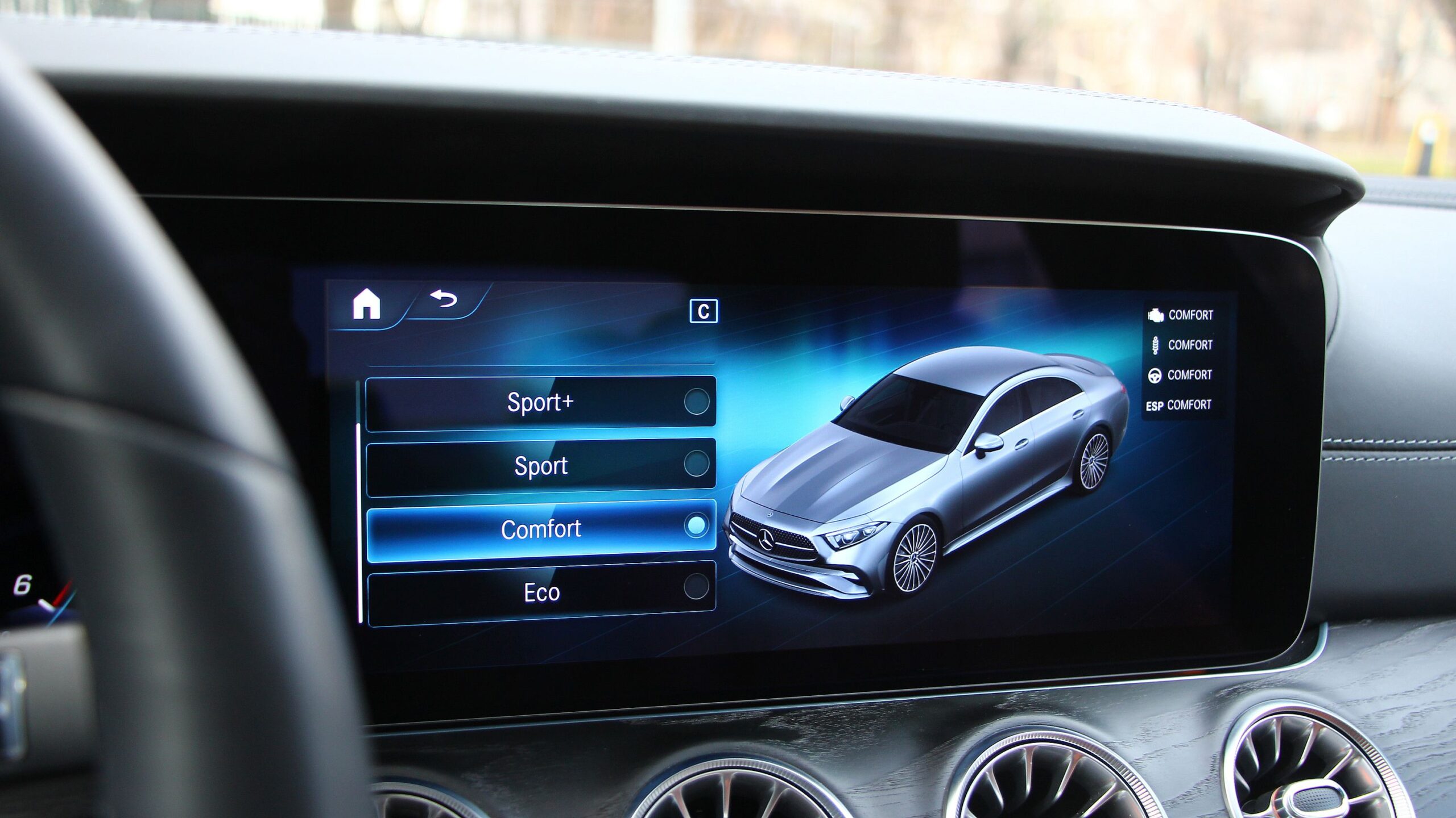 Tökéletesen illik a CLS kifinomultságához a motor, amit az orrában hord. Pedig az bizony egy gázolajos egység. De annyira finoman jár, hogy bent ülve ezt szinte észre sem venni. Kint hallgatva sem zavaró a dízel hangjának tónusa, de bent annyira ügyesen elrejtették, még hidegen is, hogy akár benzinesnek is hihetnénk. A 400 d jelölés egyébként a hathengeres, háromliteres dízelmotort takarja, ami 330 lóerőt tud, 700 Nm forgatónyomaték mellett, utóbbit már 1200-as fordulatnál leadja. Ebből már sejthető, hogy ha kell megindul, mint egy lavina a hegyoldalon. Csak a CLS felfelé is húz, veszettül húz, de úgysem kívánja benne senki a száguldozást. Az üzemmódválasztóval lehet Sport és Sport+ fokozatokat is választani, az Eco és a Comfort nyújtja a legnagyobb kényelmet. Ez egy elegáns „suhanógép”. A futómű még a durvább úthibákat is szépen kisimítja, ám eközben nem lett túl lágy sem, ezért a tempós kanyarokban is élvezet terelgetni. Persze az összkerékhajtás is segít a biztos úttartásban. Sok száz kilométer után is pihenten szállhatnak ki belőle az utasok, és valóban ez a rendeltetése ezzel a hajtáslánccal.