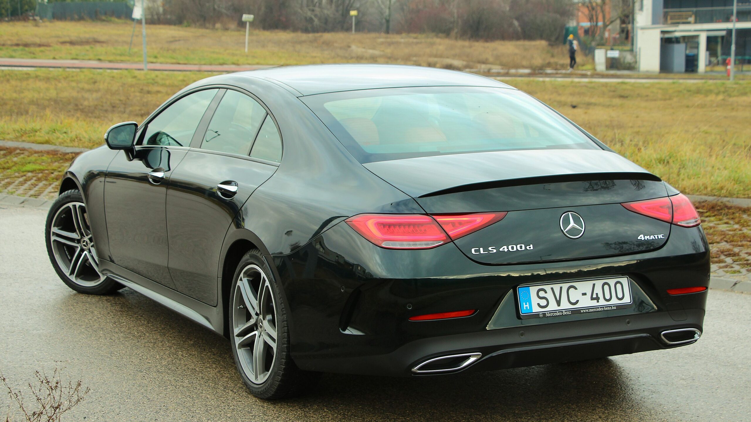 Azon lehet vitatkozni, hogy melyik a legkarakteresebb CLS a három generáció közül, legalábbis az orrát és a hátsóját tekintve, mert oldalról mindegyik gyönyörűen hozza a kupás ívet. A jelenlegi formaterv tökéletesen illeszkedik a Mercedes aktuális formanyelvébe, ám szerencsére nem lett olyannyira hasonló a többiekhez, hogy összetéveszthető legyen. Sőt, odáig merészkedek, hogy a legkarakteresebb típusnak nevezzem a jelenlegi kínálatból, igen, még egy négyajtós AMG GT-nél is figyelemfelkeltőbb szerintem. Főleg ezzel a nagyon sötét zöld fényezéssel, amit sokan feketének néznek első pillantásra. Kicsit talán a kelleténél jobban el is rejti a formai játékokat. Közelebbről persze jól látszanak a domborítások, fény-árnyék vonalak, amelyek rabul tudják ám ejteni a szemeinket. Hátul is ott az aprócska légterelő a csomagtér-ajtón, ami bár nem egy nagy látványelem, mégis sokat dob az összképen. Az egyetlen, amit simán elfelejtettem volna a formatervezők helyében, az a két kamu kipufogóvég. Nélkülük is ugyanolyan látványos maradna a CLS.