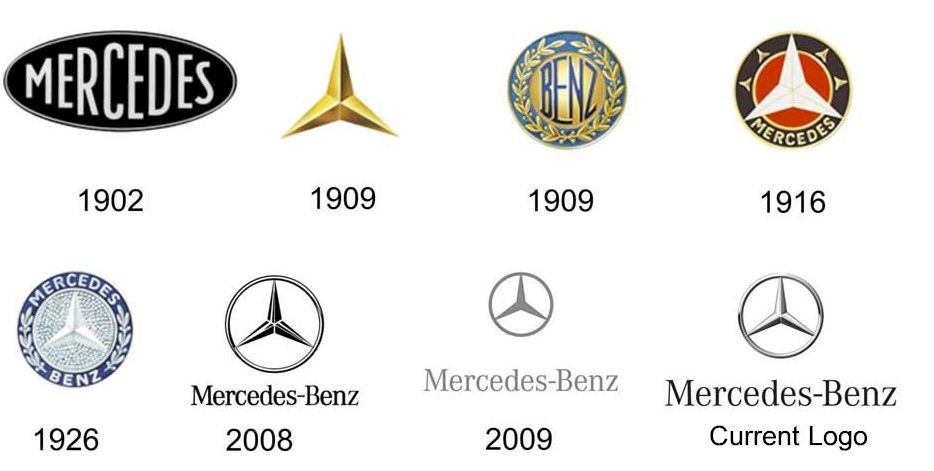 Érdekes történelmi párhuzam ez, hogy mindkét vállalat 1909-ben kérelmezte logójának „levédetését”, hiszen a belsőégésű motorral hajtott automobiljukat is szinte egyszerre, 1886-ban fejlesztették ki, mit sem tudva egymás munkájáról. Később aztán az egymással versengő cégek egyesültek, 1925. február 18-án kérelmezték jelvényük bejegyzését: a Daimler csillagát a Benz babérkoszorújában. Végül 1926. szeptember 3-án jegyezték be.