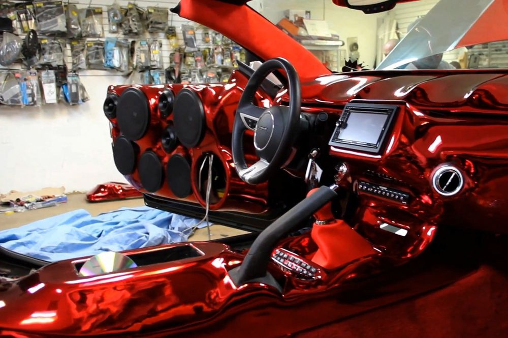 A nem túl jó minőségű képeken látható krómezüst-piros tuningszörny viszont csak rossz vicc lehet, nem más. Mint ez a korábbi eszement Hummer is. A 32 colos pimpfelniken gördülő, ízlésrendőrség után kiáltó kabrió a 813 Customs tuningcsapat munkája, s mivel senkit nem szeretnénk megbántani, maradjunk annyiban, hogy feltűnési viszketegségben szenvedőknek tökéletes lehet.
