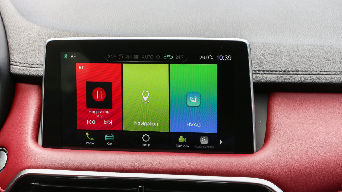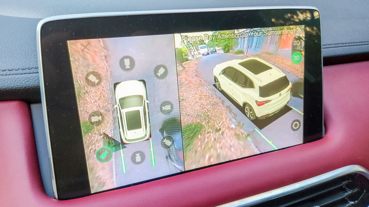 Valódi, fizikai gombokat csak az autó fő funkciói, a hangerőgombok és a klíma egyes részműveletei kaptak, egyébként csak a különböző menükbe és a főoldalra juthatunk el a gyorsgombokkal. Az infotainment rendszer észszerű, könnyen kezelhető és korszerű, a beltérrel harmonizáló dizájnba csomagolva. Érdekesség, hogy 360 fokos kamerát és 3D nézetet is kapunk parkoláskor: a kameraképek valamivel zajosabbak, az autó modellje pedig a '90-es évek számítógépes játékaira emlékeztet, de ettől még ugyanúgy váltogathatunk a nézetek között, ahogy például a BMW modellekben, csak épp fele annyi pénzért. A költséghatékonyságnak még egy kompromisszuma akad: a hardver lehetne erősebb, hogy a rengeteg extrát működtető, a kameraképeket, sofőr által adott utasításokat feldolgozó szoftver ne legyen lassú. Problémásnak így sem nevezném, mindig éppen annyit kell rá várni, hogy már észreveszed, de azért még éppen nem zavaró.