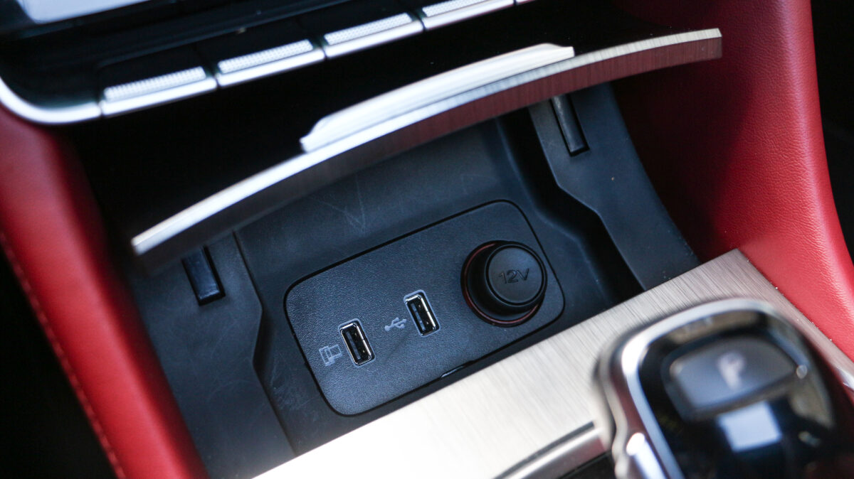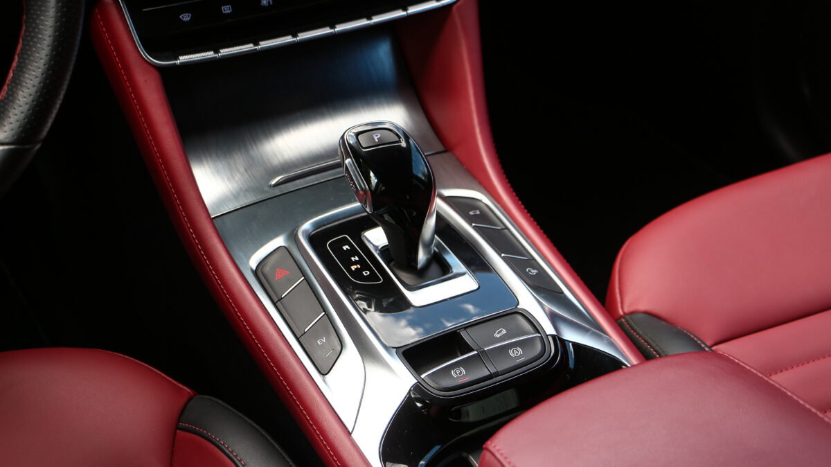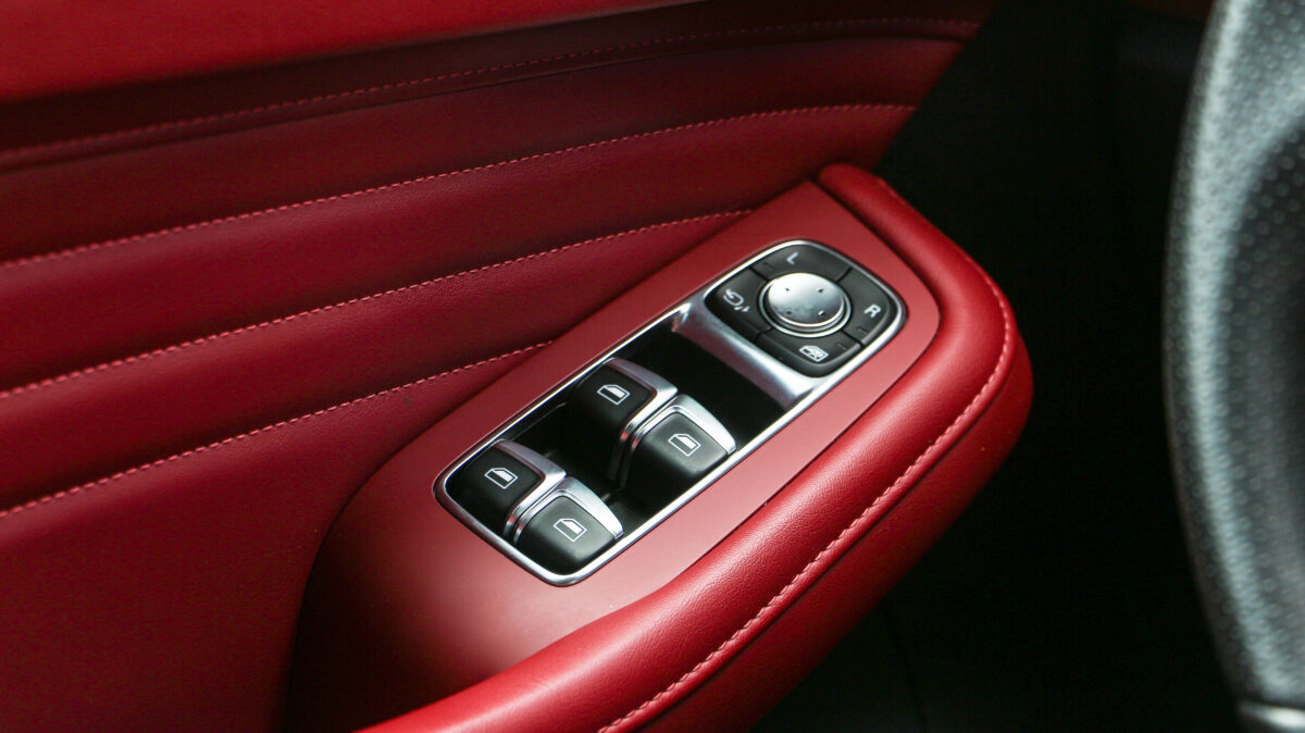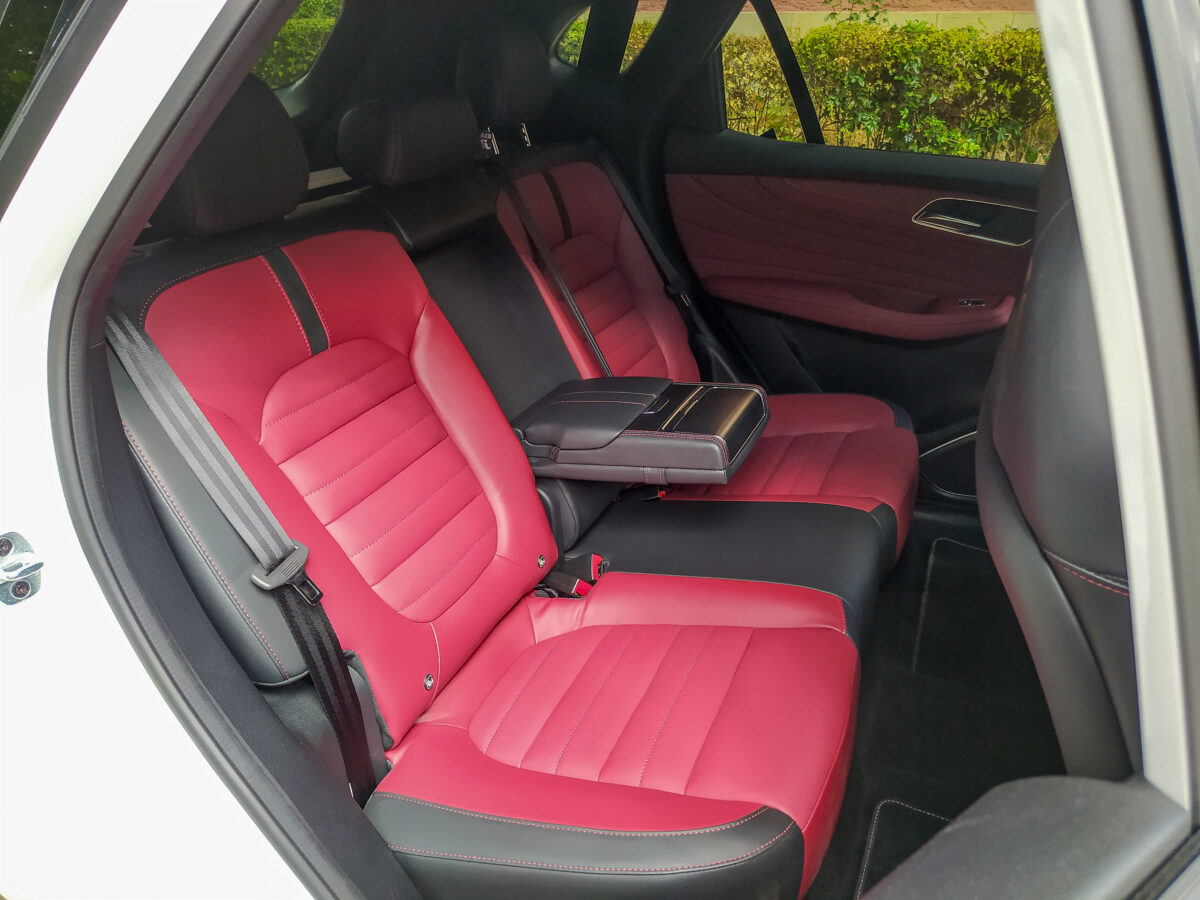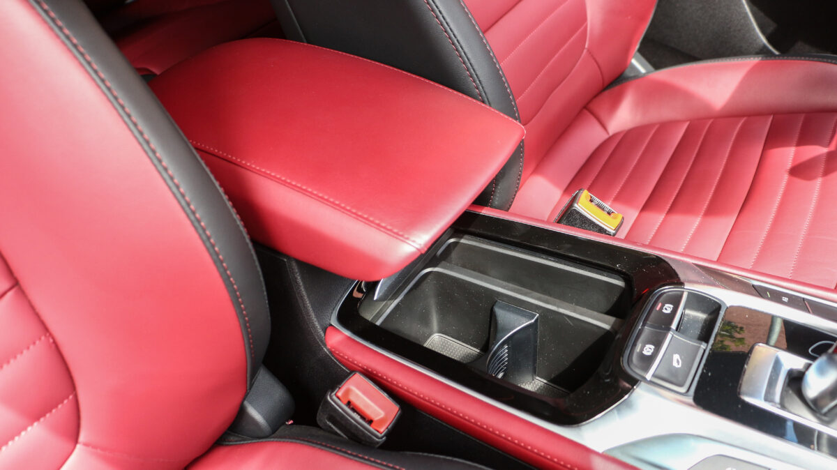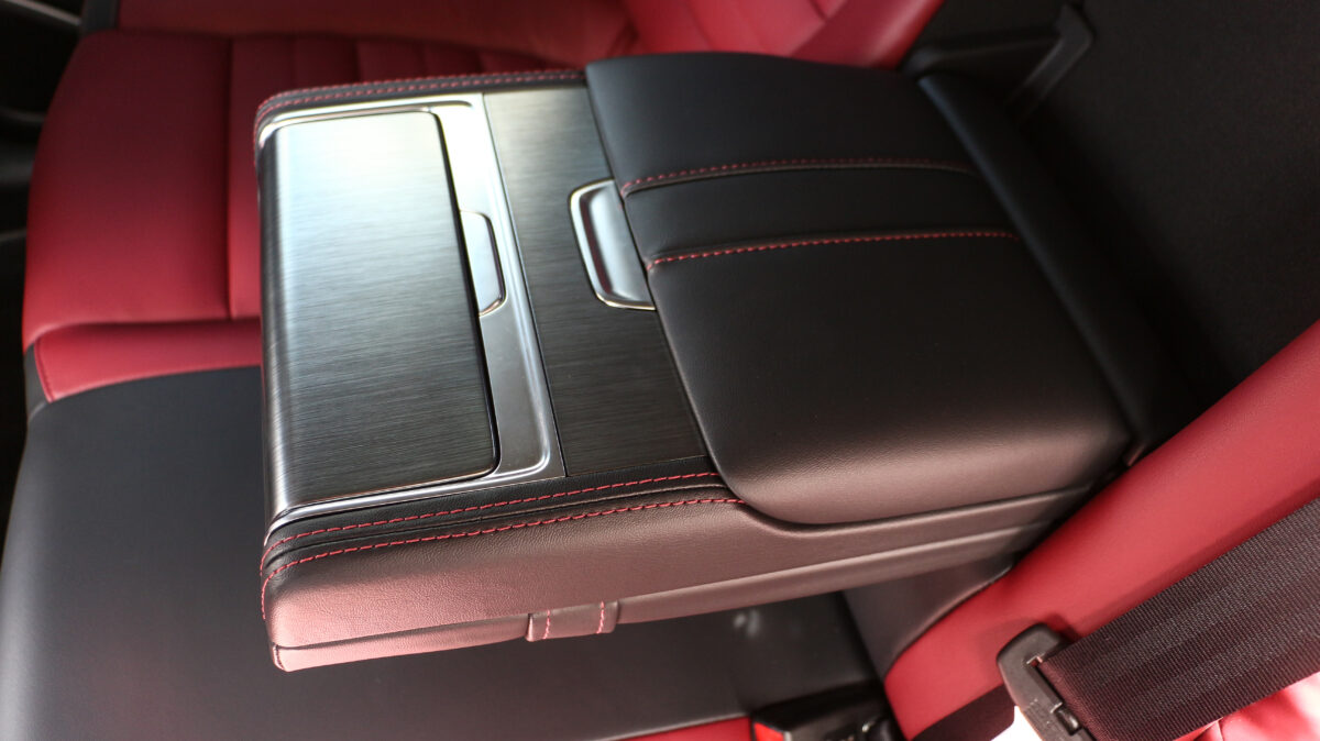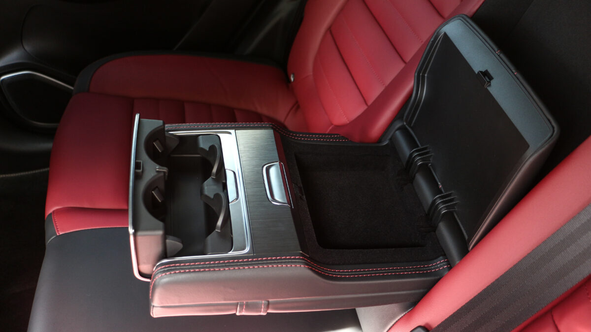 A térkínálat elöl és hátul is teljesen rendben van, ám látszik az autón, hogy két személyre alakították ki a hátsó üléssorát. A középső ülőhelynél sokkal izgalmasabb ugyanis a két pohártartóval, tárolóval és rengeteg ízléses dizájnfogással felturbózott könyöklő. Természetesen jut hátra szellőző és telefontöltési lehetőség is, ám külön klímazóna nincs, az itt utazóknak be kell érniük az elöl beállított hőmérséklettel. A két vörös-fekete első fotelben viszont minden megvan, amit ebben az árkategóriában elvárna az ember: fűthetők az elektromosan állítható ülések, ráadásul meglepően gyorsan mozognak, a sofőroldalon pedig még a deréktámasz keménysége is szabályozható. A könyöklő is állítható, ahogy a multifunkciós bőrkormány is, ez utóbbi a klasszikus, régimódi prémiumautók kormányainak fogására emlékeztet.