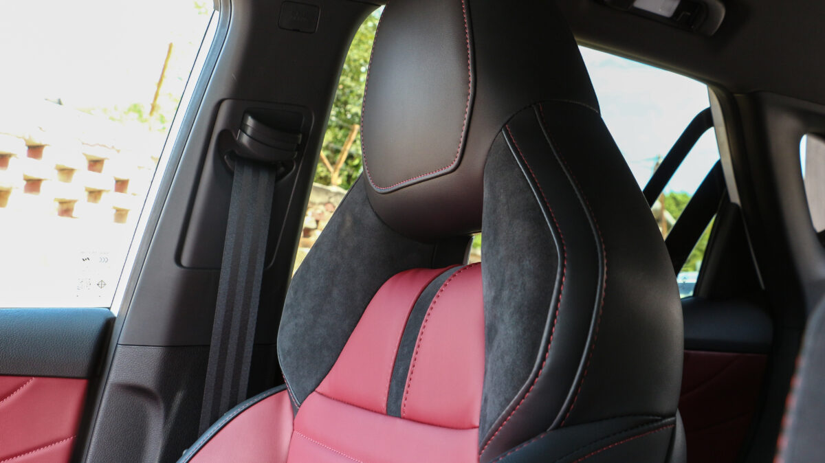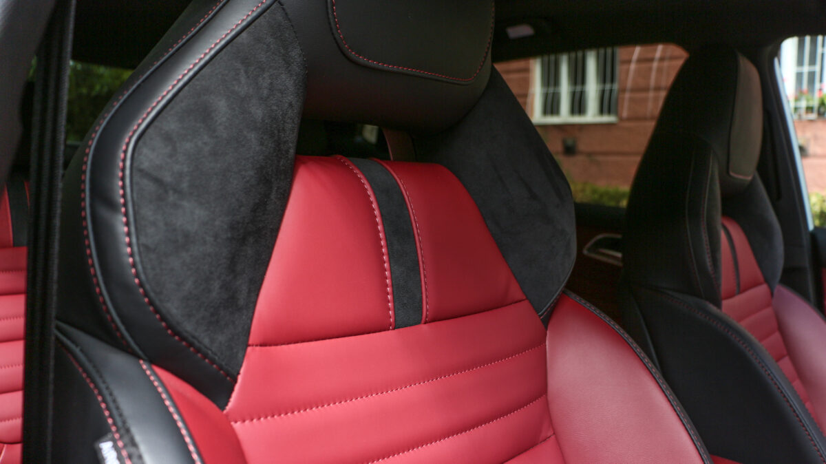 Az első sorban integrált fejtámlákat és némi belecsempészett alcantara-bevonatot is találunk