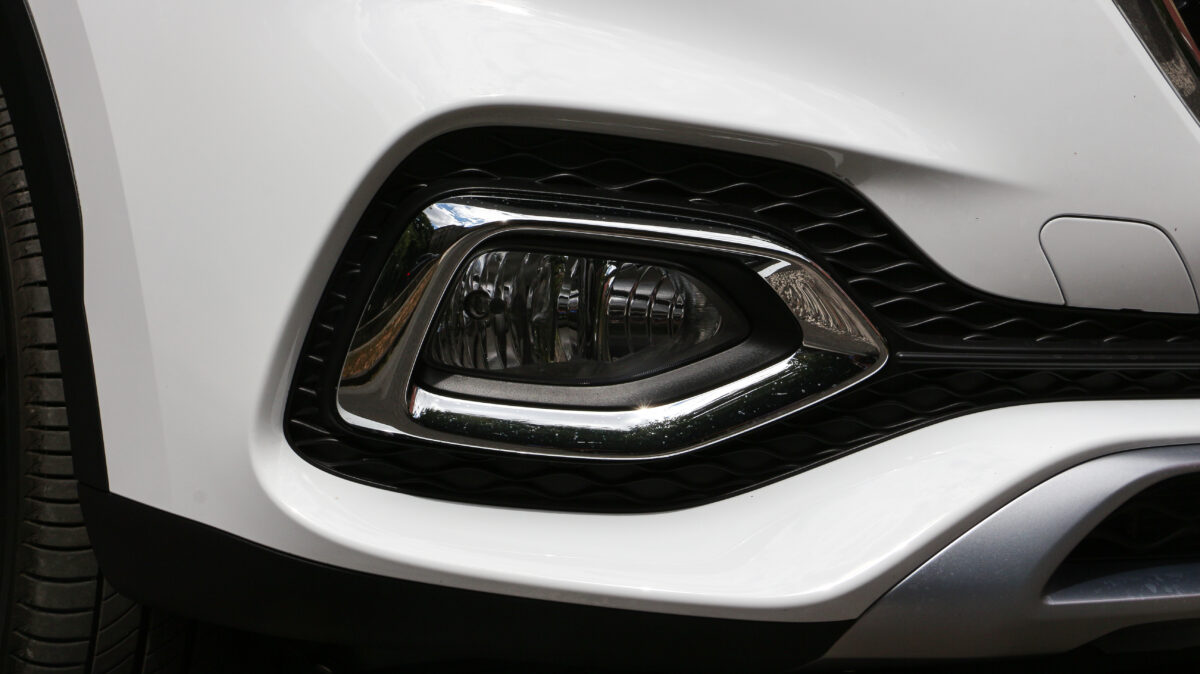A 18 colos felnik sem hatalmasak, ám formájuk miatt még kisebbnek hatnak, a ködlámpák lekerekített krómkerete is egy régebbi kort idéz