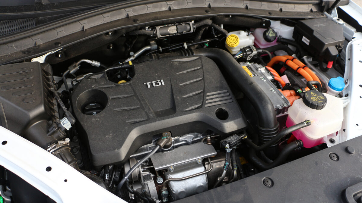 Amitől az első pár méter után a legjobban tartottam, az tagadhatatlanul a hajtás volt, ám az EHS gyorsan meggyőzött, hogy itt sem kell félni a kínaiak technikájától. A villanymotor ugyanis egy az egyben a SAIC, avagy a Shanghai Automotive Industry Corporation műve. Az 1,5 literes benzinmotort pedig még a General Motors-szal együttműködve fejlesztették ki az előző évtizedben, korábbi változatai egy-két régi Opelben bukkantak fel az európai piacon, természetesen a Stellantis birtokbavétel előtt. Előbbi 122 lóerővel és bármikor elérhető 230 newtonméterrel mozgatja az 1,7 tonnás karosszériát, míg utóbbi 165 lóerőt kínál 5500-as fordulatszámnál, maximális nyomatékértéke pedig 250 newtonméter, ami 1700 és 4300 közötti fordulattartományban érhető el.