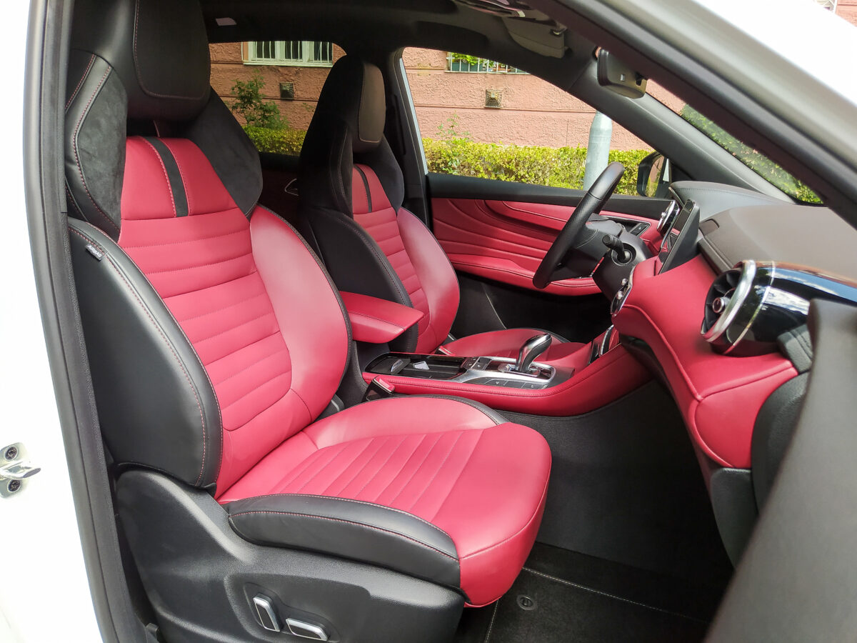 A legtöbb vetélytárs kívül valamelyest modernebb dizájnt ígér, ám az utastérben az EHS nyújtotta látványvilágra sem lehet panasz. Főleg igaz ez a feláras burgundi bőrkárpitozással, így ugyanis csodaszép, ám műbőr-szerű tapintású anyagokba burkolják az ülések mellett az ajtókárpitokat és a teljes műszerfalat is. Ezzel nem csak ebben a kategóriában köröznek le mindenkit, hanem eggyel feljebb is, lényegében ugyanazok a puha és kényelmes anyagok ölelik körbe a zseniális dizájnt kapott, 12,3 colos digitális műszeregységet és a tabletszerű, 10,1 colos központi érintőképernyőt, mint amelyeken ülünk és könyöklünk.