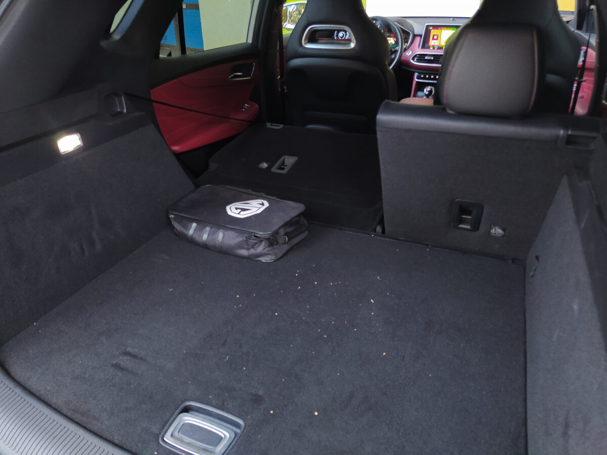 Praktikum és kényelem terén egyedül a csomagtartónál veszíthet, aki az EHS mellett dönt, ám ott sem minden konkurenssel szemben: mindösszesen 448 literrel tud szolgálni az akkucsomag miatt. A Kia Sportage ugyanitt 540 litert, a Peugeot 3008 pedig 395 litert tud felmutatni, ám összességében az EHS csomagtartóját sem éreztem sokkal nagyobbnak a néhány hónapja tesztelt, oroszlános vetálytársa puttonyánál. Bővíthetőség terén 60:40 arányban dönthető és állítható meredekségű üléstámlákkal, valamint hátsó férőhelyek nélkül szinte teljesen sík padlóval és 1357 literrel szolgál.