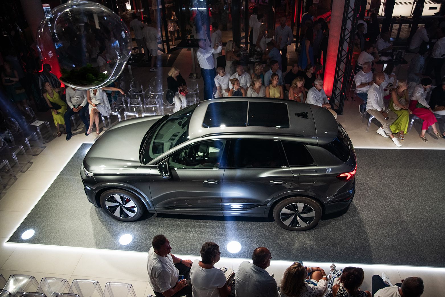 Nem sokkal később megérkezett az est sztárja is, a Q6 e-tron, stílszerűen a modellek kifutópályáján bevonulva. A rendezvényen természetesen az élesebb SQ6 e-tron is tiszteletét tette. Ahogy az alapkivitel, úgy ez is az új PPE platformra épül, amelyet az Audi a Porschéval közösen fejlesztett ki. A csúcsmodell 490 lóerős teljesítményt kínál, a kezdő ára pedig 39 391 590 forint. Az ugyancsak összkerékhajtású Q6 e-tron quattro 31,5 millió forintról indul, de a Buisness kivitel ennél valamivel olcsóbban megúszható, ugyanis e mellett 28,9 millió forintos árcédula szerepel. A belépő szintet a kizárólag a hátsókerék-meghajtású Q6 e-tron performance jelenti a maga 28,9 millió forintos alap vételárával, de ebből is elérhető a Buisness verzió, amelynek konfigurálása már 26,8 millió forinttól indulhat.