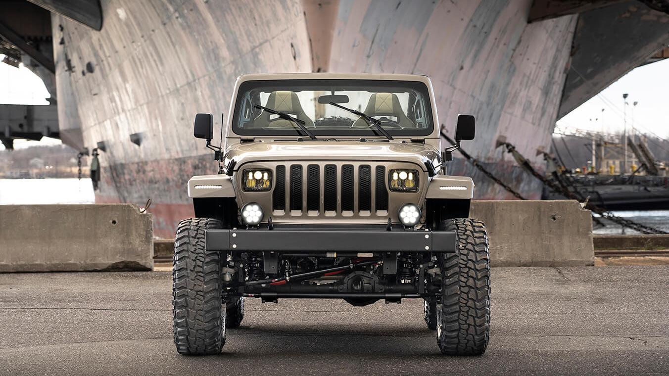 A kockalámpás, 1989-es Wranglert idézi, a lámpafészkei az eredeti autóról kerültek rá