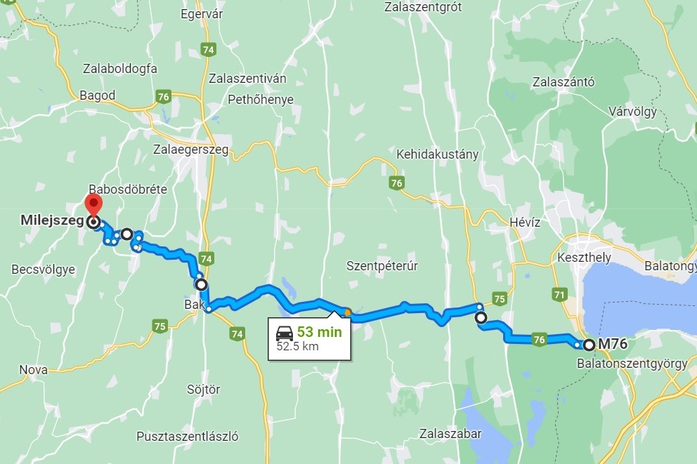 Ennek ellenére a péntek késő esti odaúton inkább a telefonomra váltottam, mert a 410 kilométernyi, 11 literes átlagfogyasztással társuló autópálya, valamint a más járművel megközelíthetetlen, 7 órányi utazást ígérő földutak közül én inkább a 360 kilométernyi országutazást választottam, amit a Land Rover térképapplikációjából esélyem sem volt kicsalni. Ennek ellenére az autó navigációját is bekapcsolva hagytam, hátha mutat majd pár új rövidítést. Ez egy jó döntés volt: a Zalában majd 20 kilométert spóroltunk lehetetlennek gondolt helyeken. Először egy, a hegygerinc két oldalán párhuzamosan futó, aszfalton majd' 8 kilométeres távot vágtunk le alig 1 kilométernyi erdőjárással és egy kisebb patak (!) átszelésével, majd a céltelepülésünkre egy 15 kilométeres zalaegerszegi kerülő helyett is a dombokon és erdőkön át mentünk, így a tervezettnél fél órával és 20 kilométerrel előbb érkeztünk.